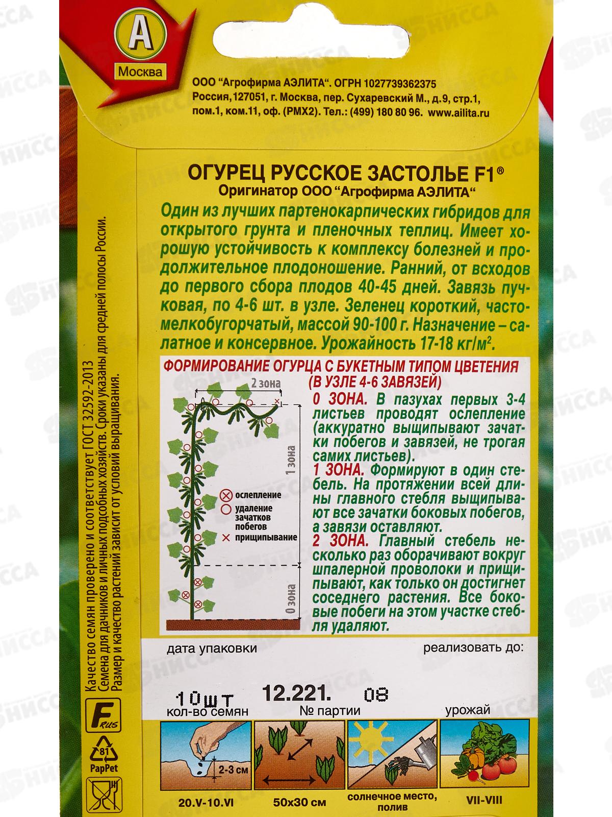 Один из лучших партенокарпических гибридов для открытого грунта и пленочных теплиц. Отличается длительным плодоношением и хорошей устойчивостью к комплексу болезней. Ранний, от всходов до первого сбора плодов 40-45 дней. Завязь пучковая, по 4-6 огурчиков в каждом узле. Зеленец короткий, белошипый, часто- и мелкобугорчатый, массой 90-100 г. Назначение – салатное и консервное. Урожайность в теплице 12-15 кг/м2.