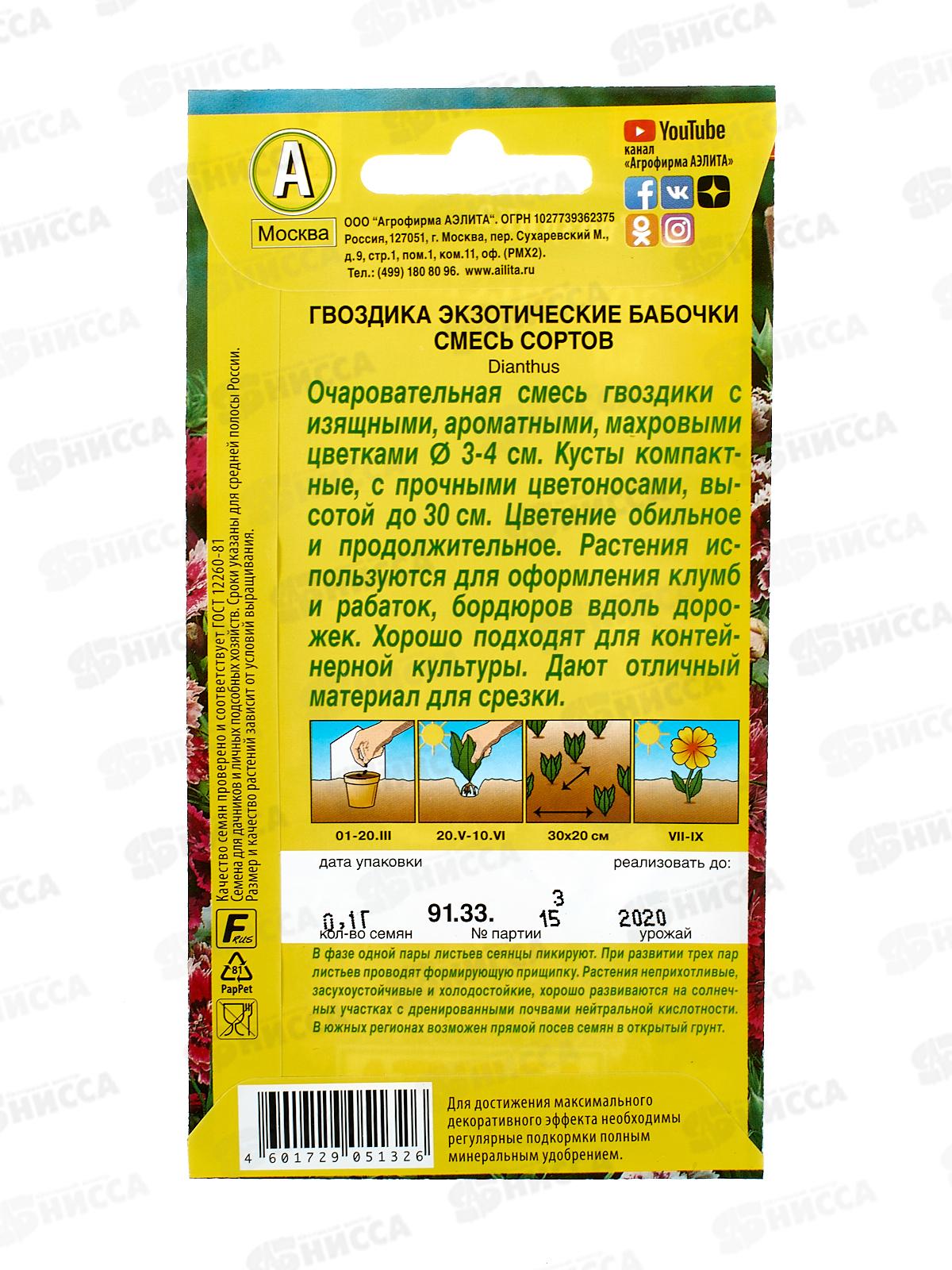 Гвоздика Экзотические бабочки,смесь окрасок *10 АЭЛИТА срок до 12.24