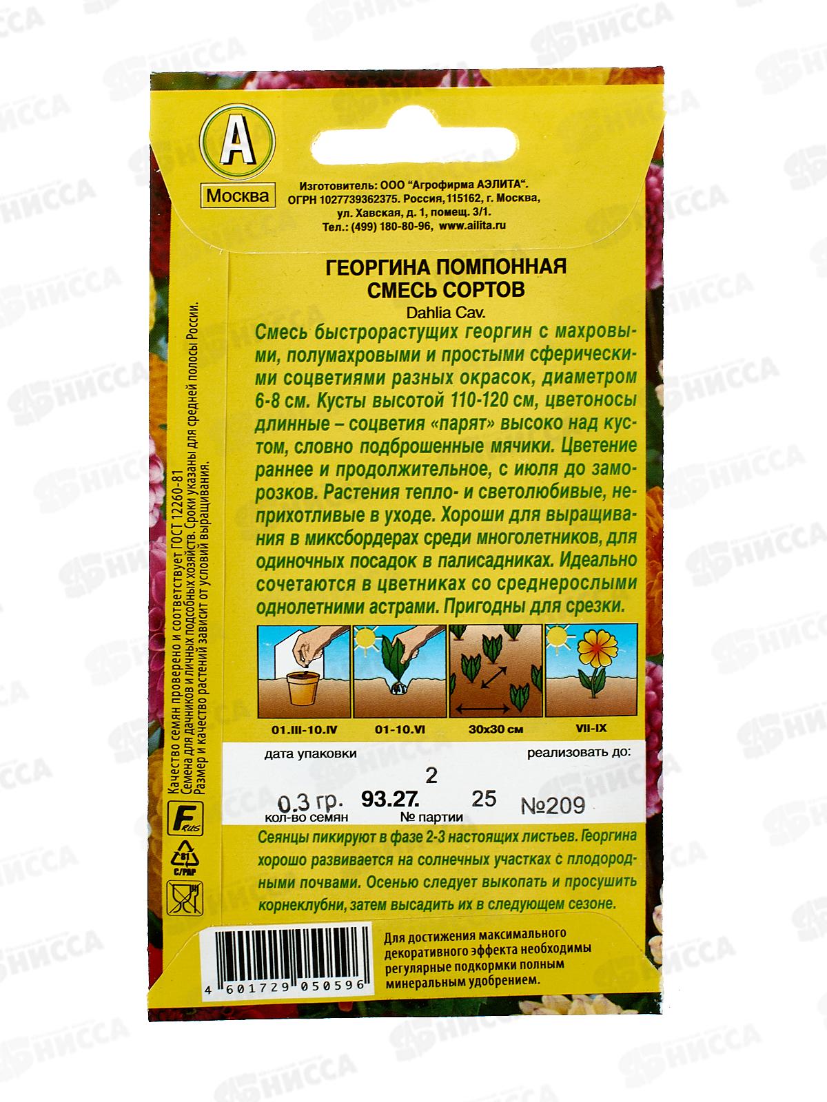 Георгина помпонная,смесь окрасок *10 АЭЛИТА +