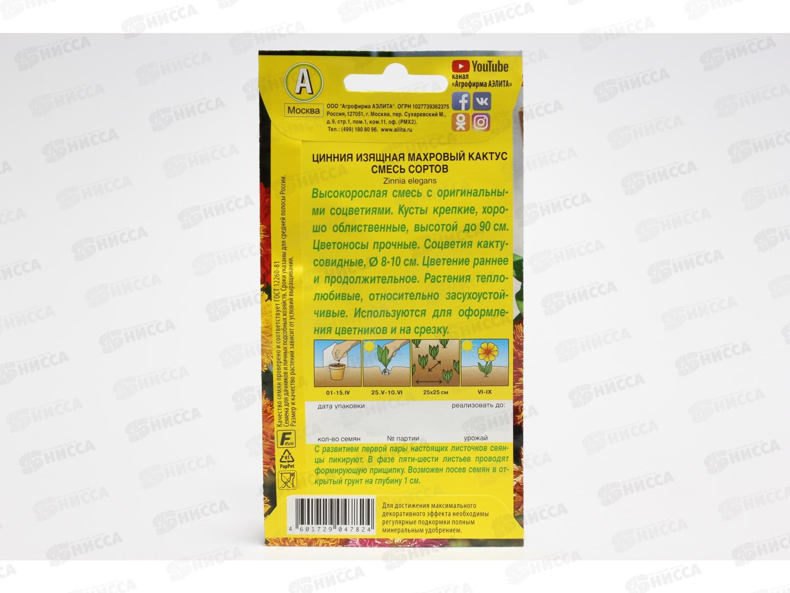 Цинния Махровый кактус,смесь окрасок *10 АЭЛИТА +