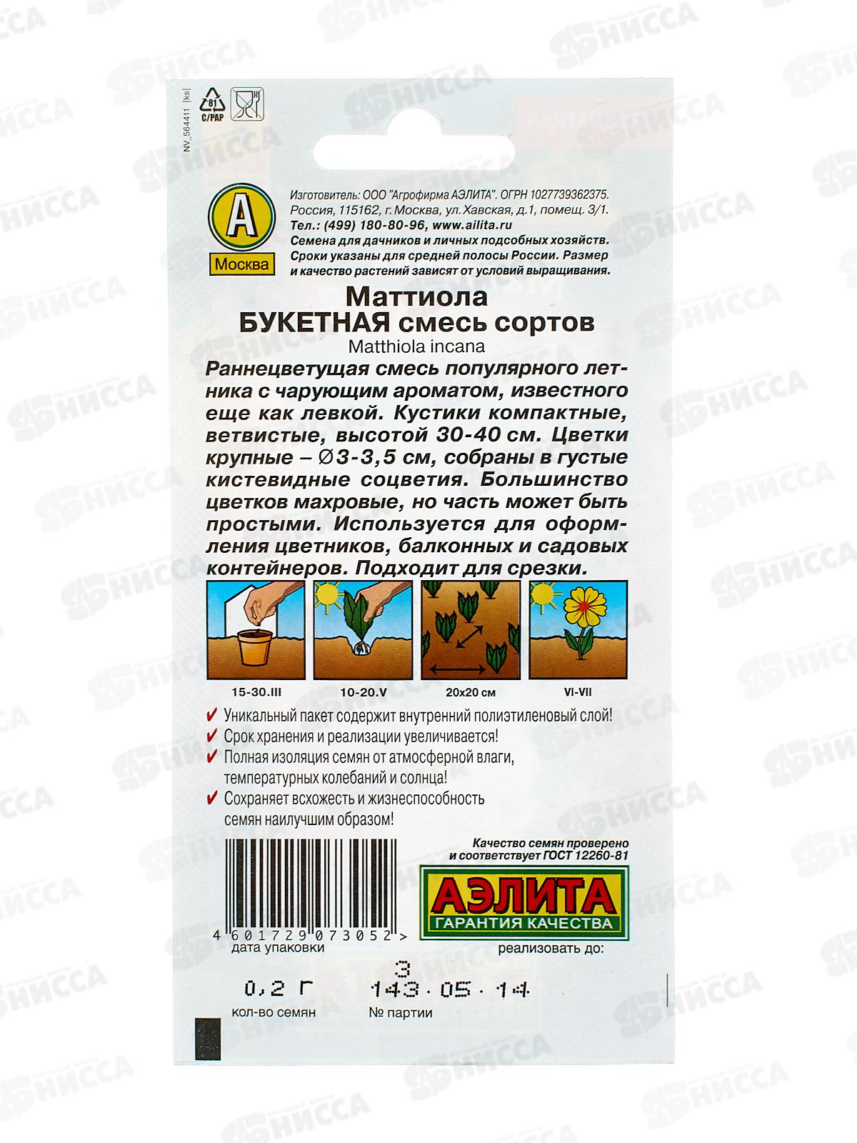 Маттиола(Левкой) Букетная, смесь окрасок *10 АЭЛИТА +