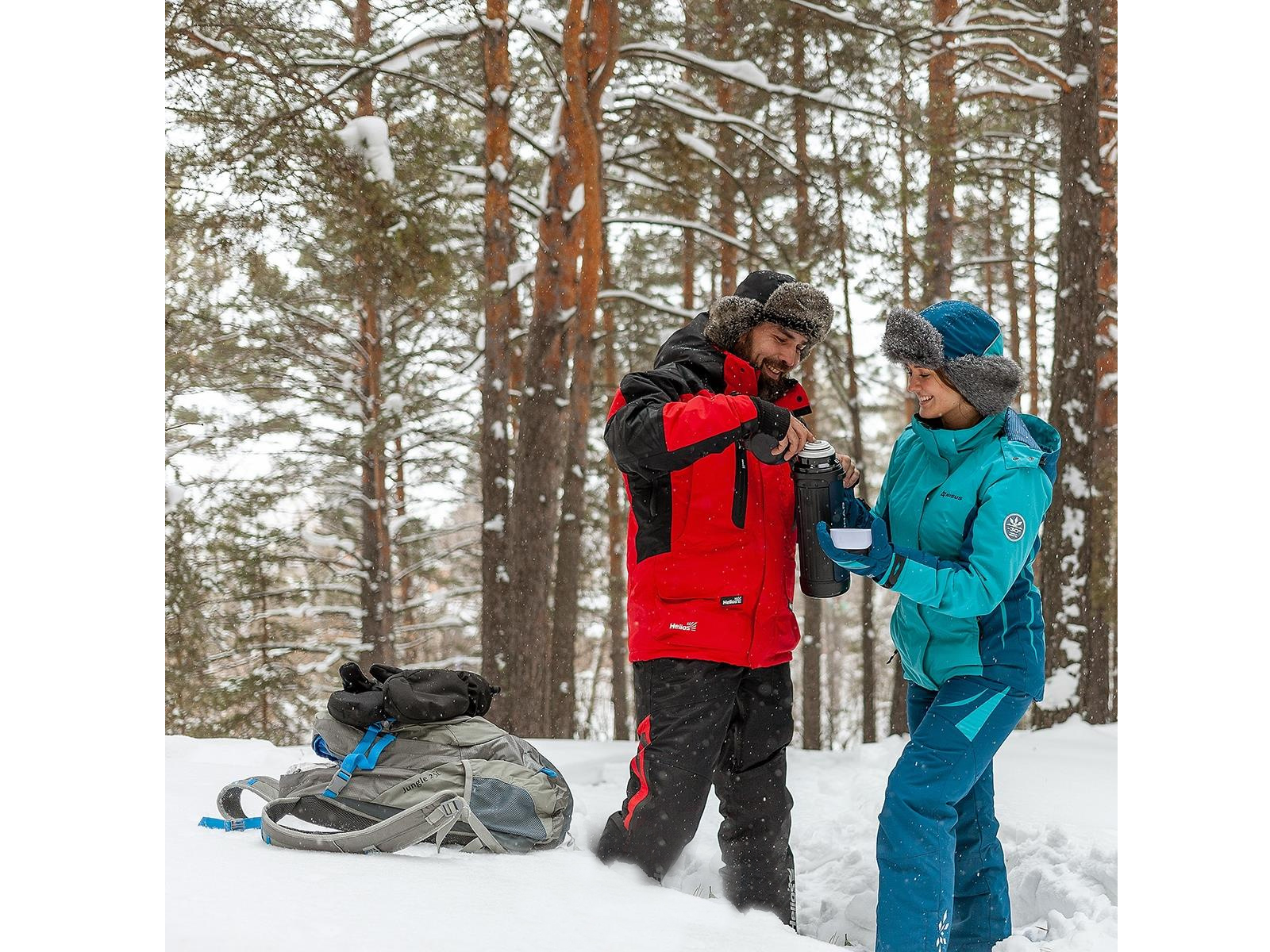 Универсальный термос с удобной складной двойной ручкой. Термос укомплектован вместительной крышкой-чашкой с ручкой, дополнительной пластиковой чашкой, ремнем для переноски.