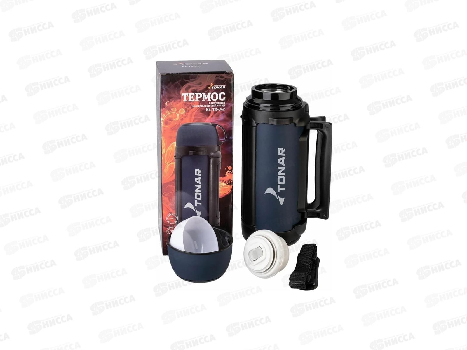Универсальный термос с удобной складной двойной ручкой. Термос укомплектован вместительной крышкой-чашкой с ручкой, дополнительной пластиковой чашкой, ремнем для переноски.