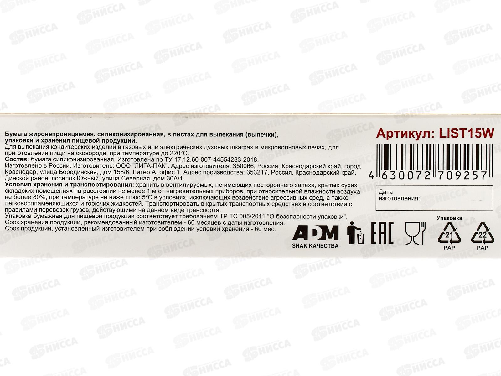 Бумага для выпекания LIST15W силик 15листов 38*42см белая в/к *24