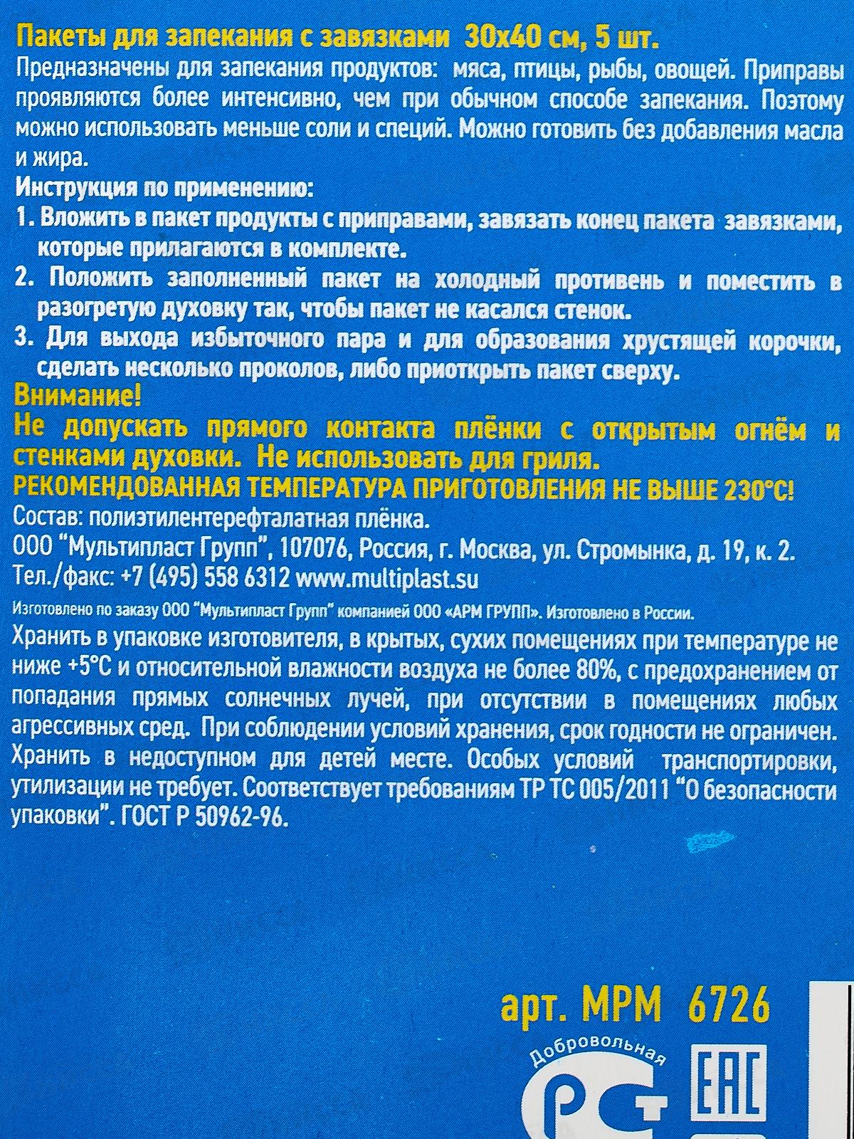 Пакеты для запекания с завязками Мамонтенок 30*40с 5штм *30 МП