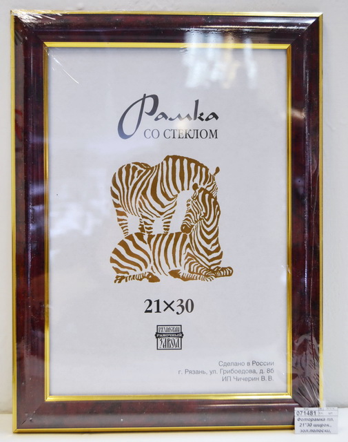 Фоторамка пластиковая 21*30 широкие, золотые полоски, 3907 бордо *25