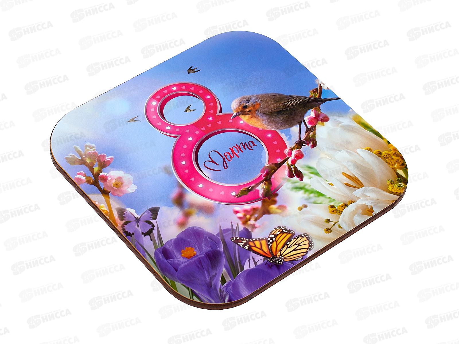 Подставка под горячее дерево 18*18см С-60 " 8марта"