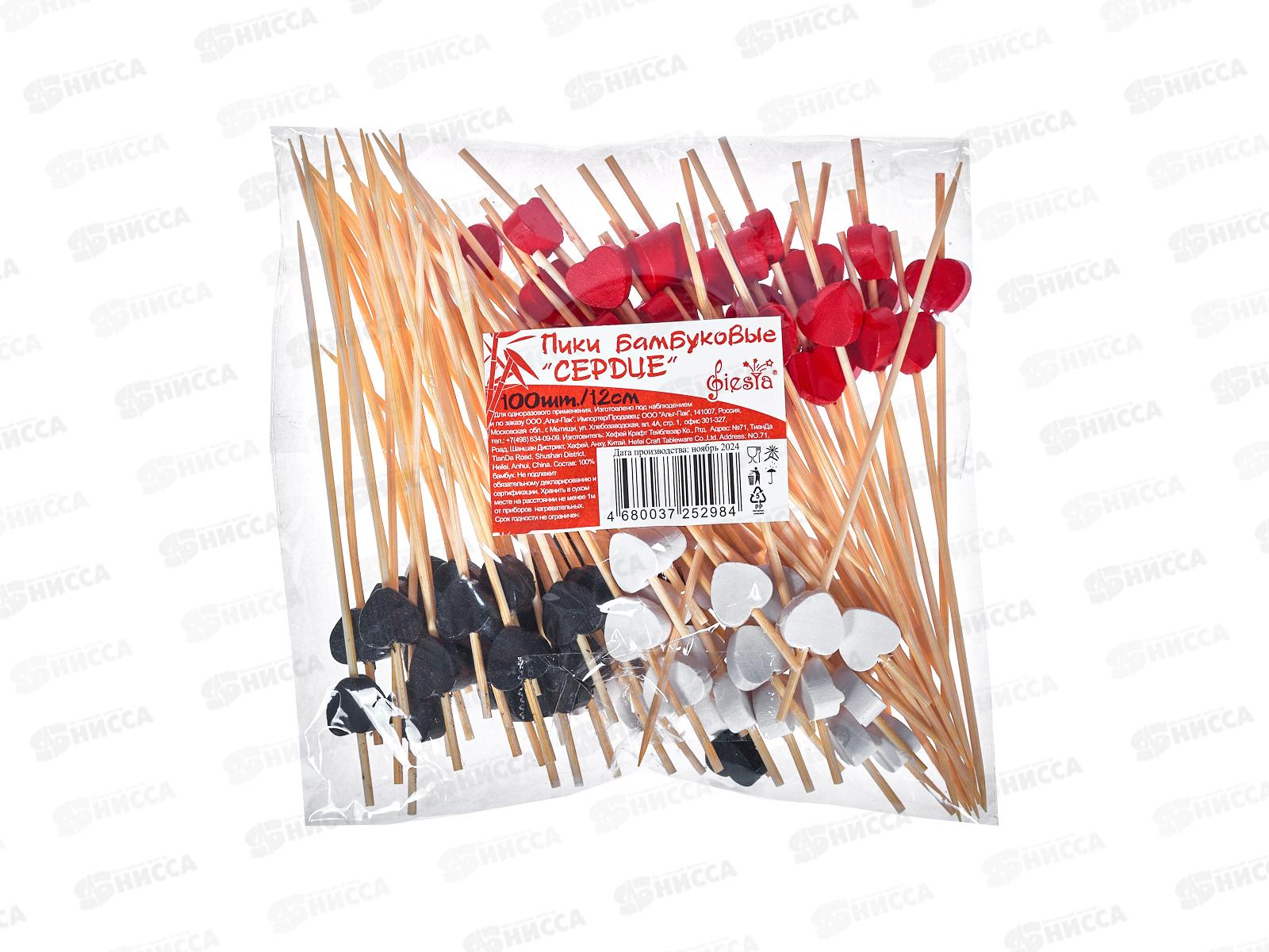 Пики бамбук "СЕРДЦЕ" 12см, FIESTA уп/100шт 09060236