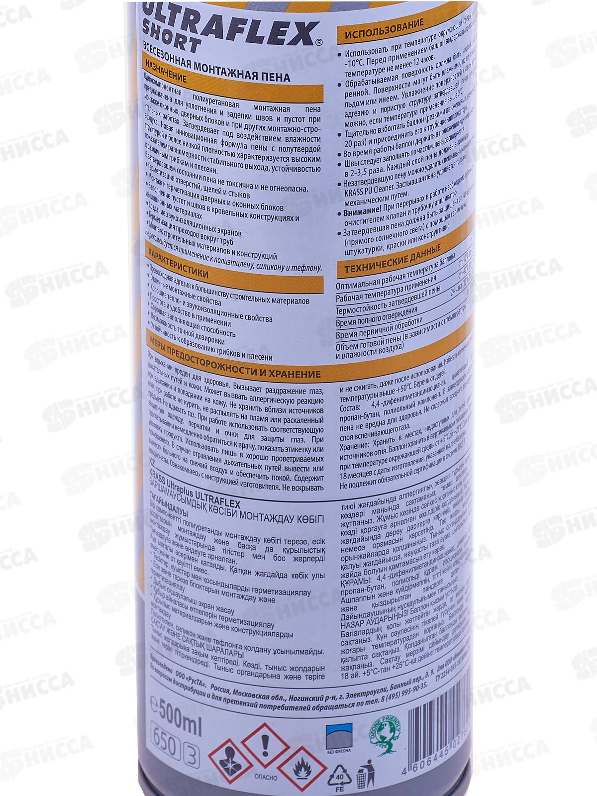 Пена монтажная ULTRAFLEX Short Всесезон 500мл, 0005285 *12/1008