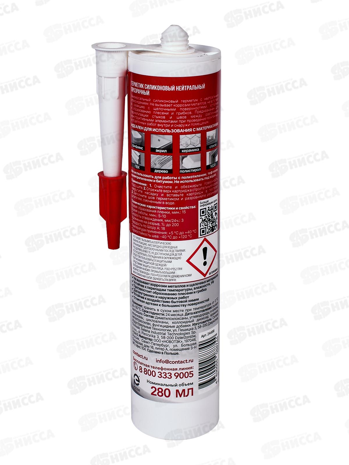 Герметик силиконовый "КОНТАКТ" нейтральный, прозрачный, 280мл, 498 *12