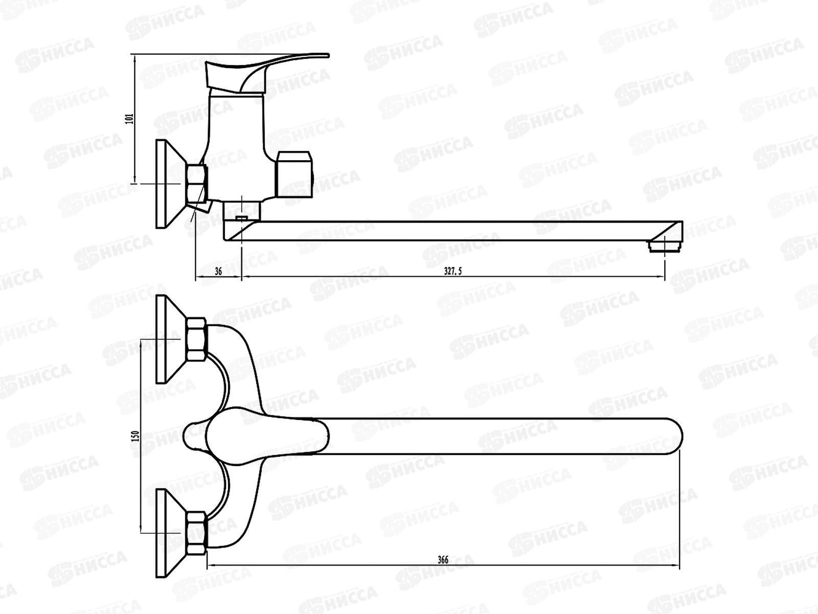 Смеситель Союз кран одноручной для ванны с длинным изливом карт 35мм 553-065 г