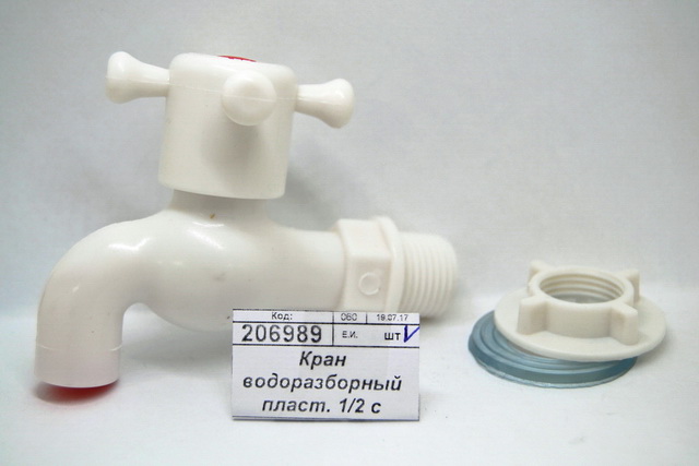 Кран водоразборный пластиковый 1/2 с гайкой и прокладкой