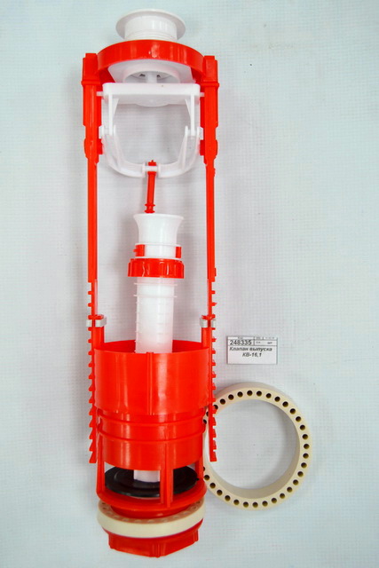 Арматура спускная КВ-16.1 кнопочная. Данная арматура качественно отличается от штоковых арматур, при этом она включает в себя лучшие их качества. Арматура универсальная: устанавливается в "средние" бачки (высота до крышки бачка от 310 мм до 390 мм), и "высокие" (высота до крышки бачка 420 мм).