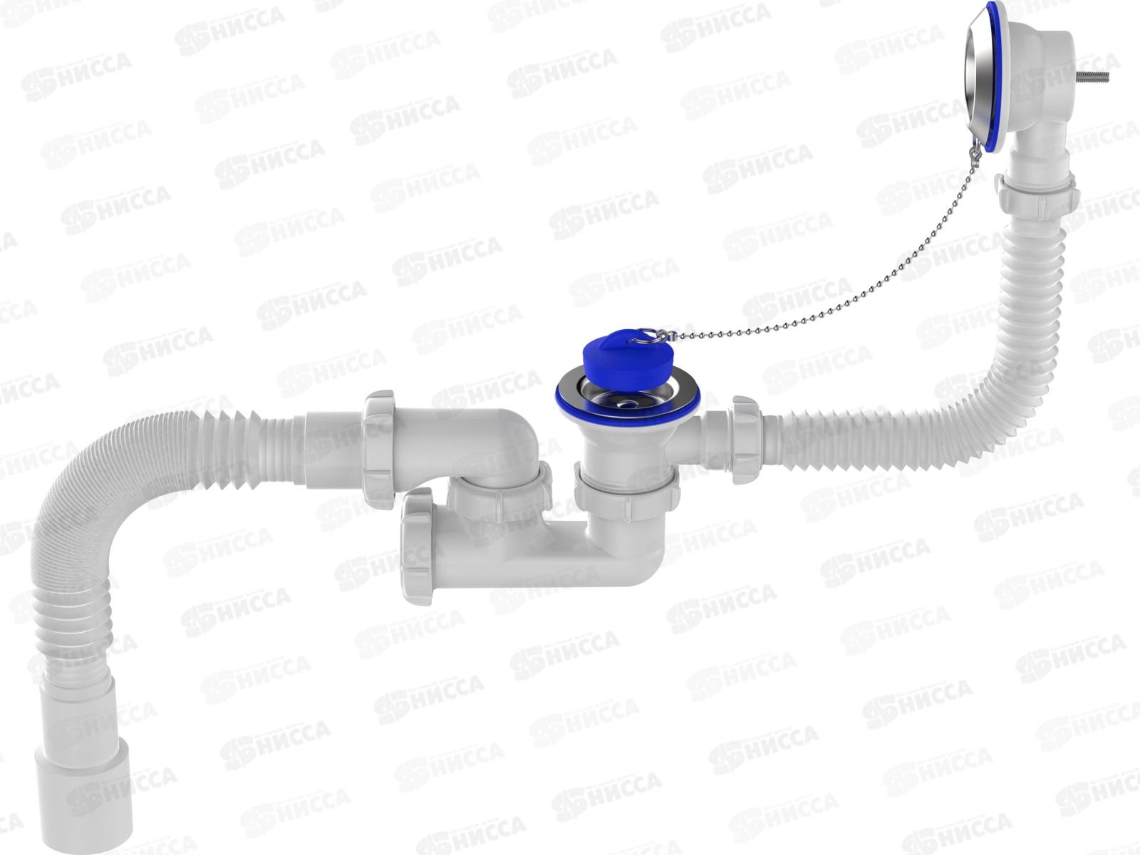 Сифон для ванн регулируемый. Подходит для всех типов ванн, в т.ч. чугунных. Решетка крепится на винт 60мм и шестигранную гайку М6. Перелив с трубкой длиной 50см и металлической решеткой. Колено сифона регулируемое с высотой гидрозатвора 50 мм, имеет ревизионное отверстие, заглушенное прокладкой и гайкой, для легкой прочистки сифона без его демонтажа, а Г-образная трубка отвода позволяет направить гофротрубу слива в нужную сторону. Артикул идет в комплекте с гофротрубой с универсальным выходом в канализацию 40х40/50мм и прокладкой-бабочкой из термоэластопласта (ТЭП), который не вступает в реакцию в акриловыми ваннами. Пробка для перекрытия воды из ТЭПа, на цепочке. Полная комплектация, все гайки, прокладки и схема установки в комплекте.