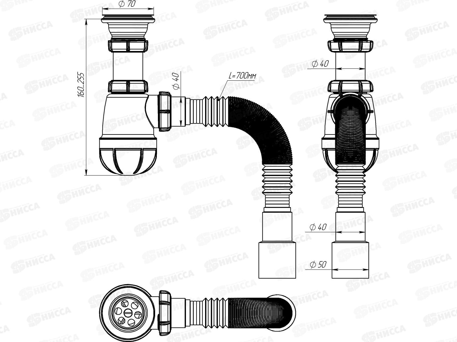 Сифон для кухни 1 1/2" х 40 с гибкой трубой 40х40/50, B0115-30 *30