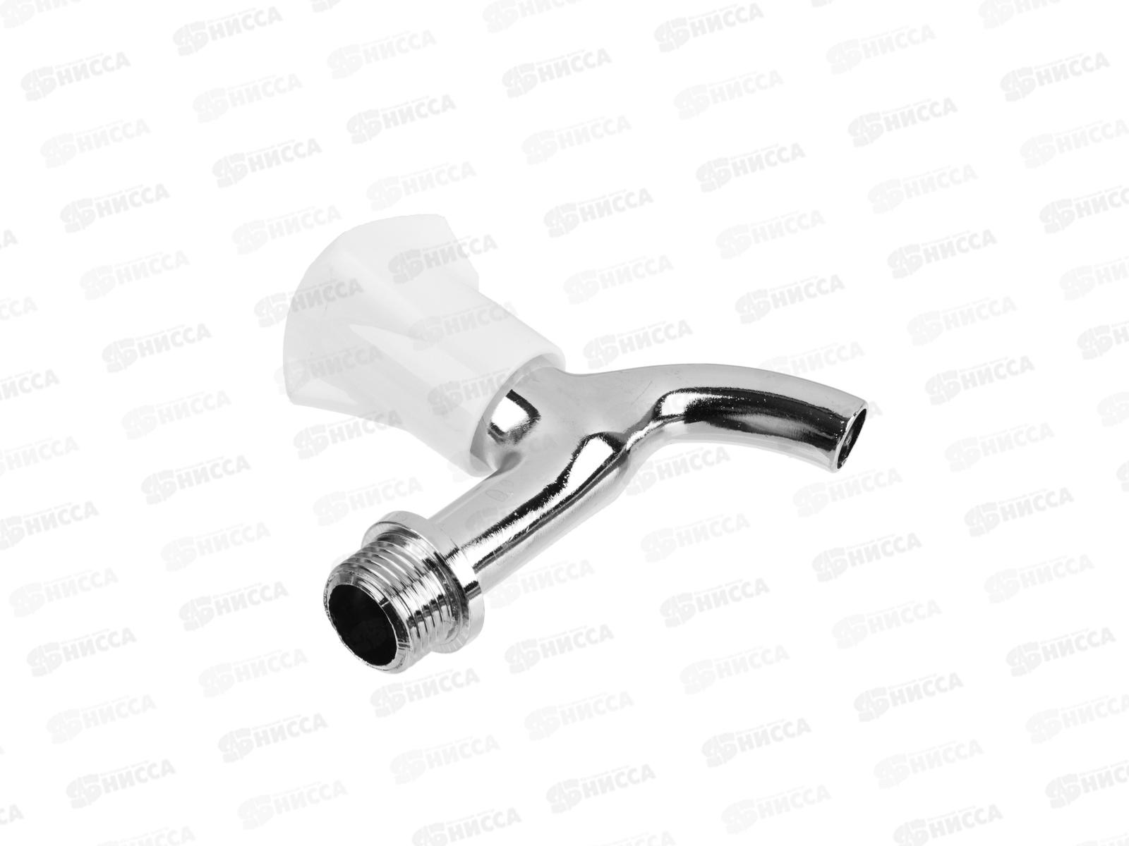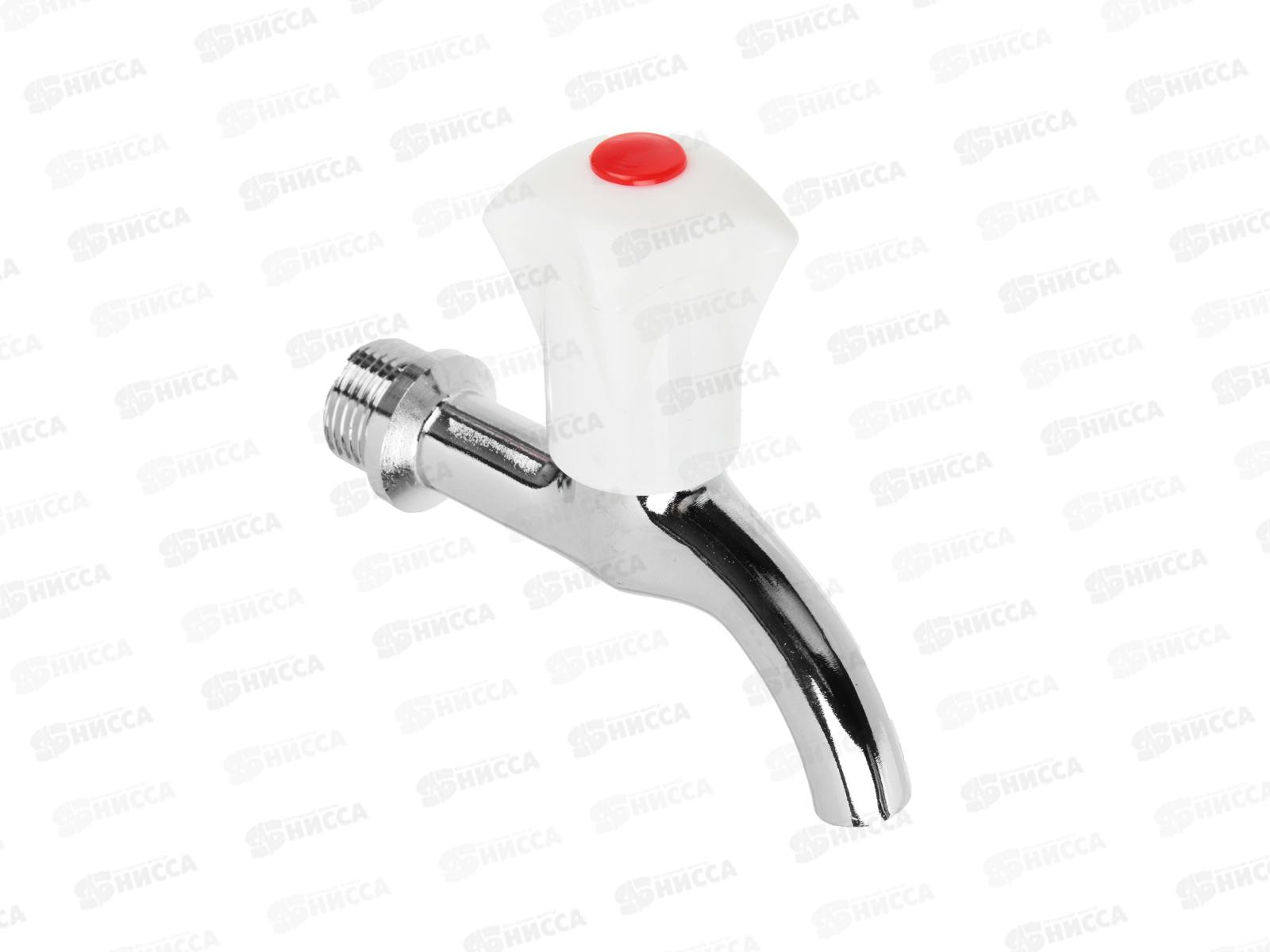 Кран водоразборный 1/2" короткий излив, ручка белый пластик 554-088 г