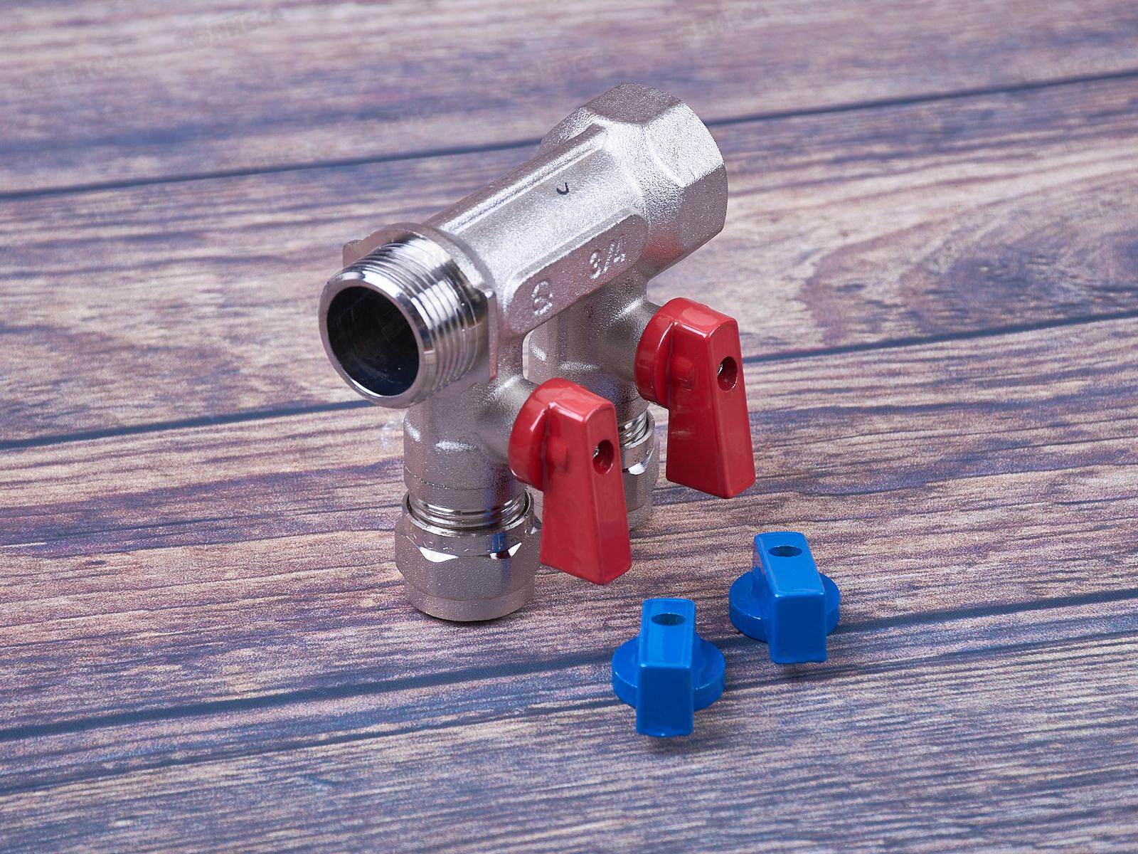 Коллектор Aqualink 03933 2 выхода с шаровыми кранами с внутренней и наружной резьбой 3/4 дюйма 16 мм используется для распределения и регулирования рабочей среды в системах горячего и холодного хозяйственно-питьевого водоснабжения, а также отопления: системы «теплый пол» и радиаторного отопления.