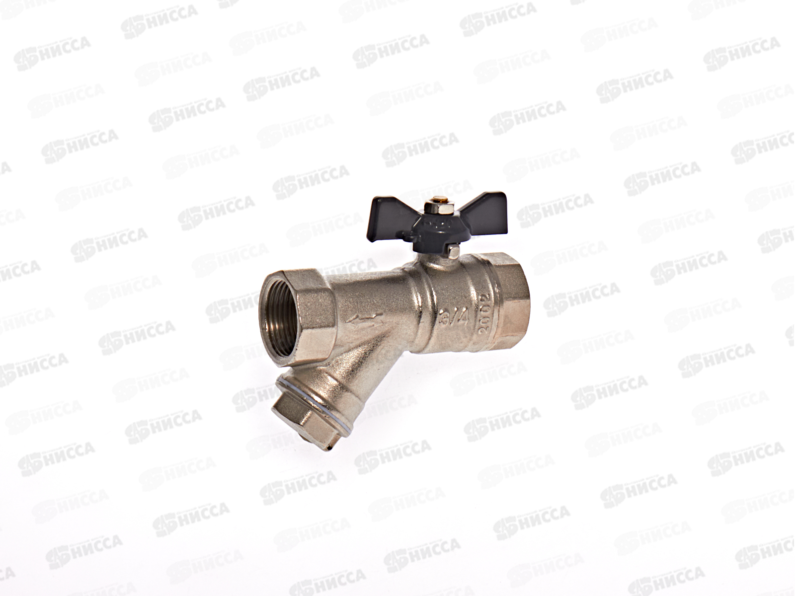 Кран шаровый FF 3/4 Vs В, с косым фильтром гайка-гайка бабочка, Aqualink *5/50