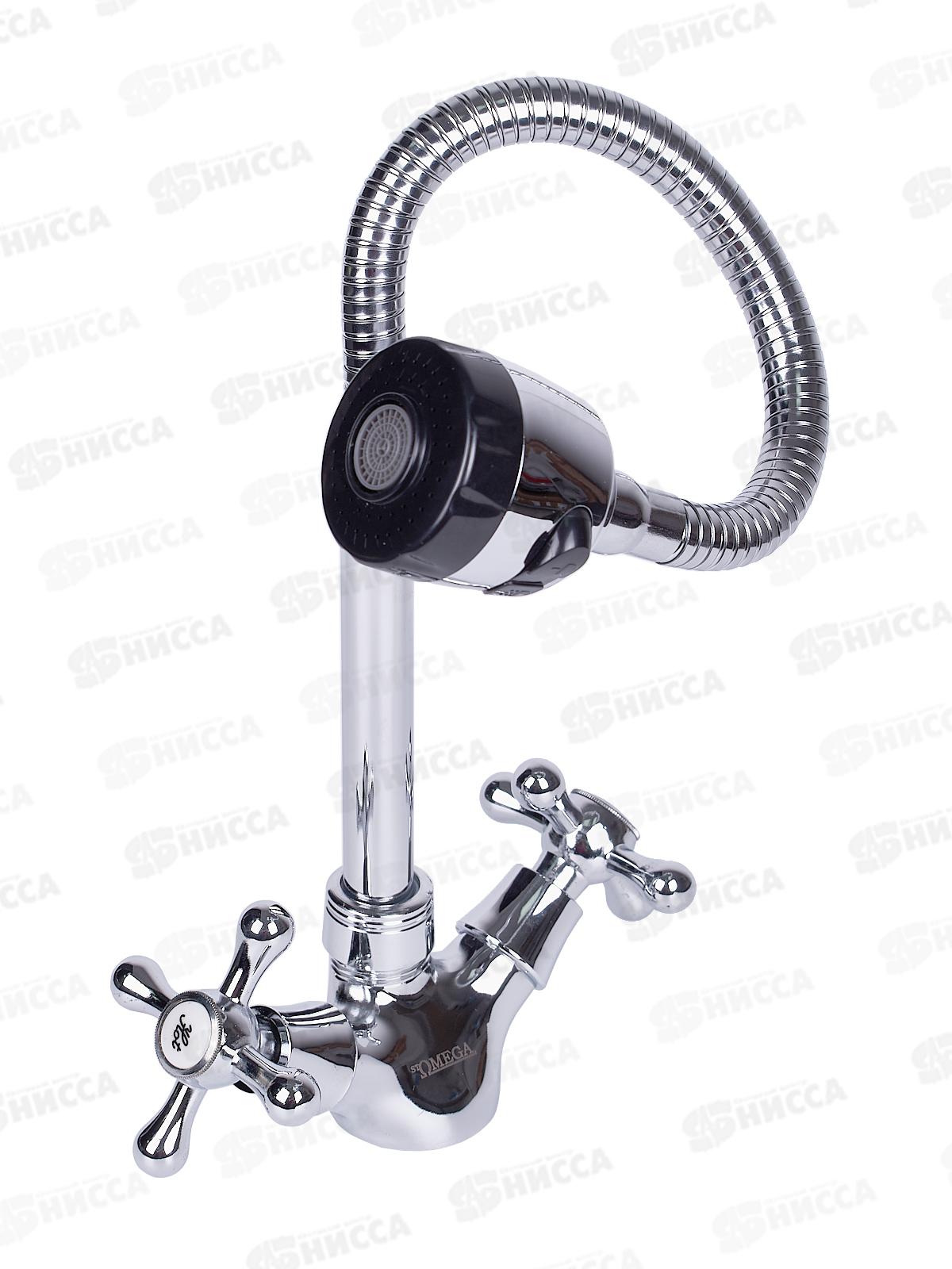 Смеситель для кухни Омега 1/2 керамика крестовой, с гибким изливом 48см, 4411 *10