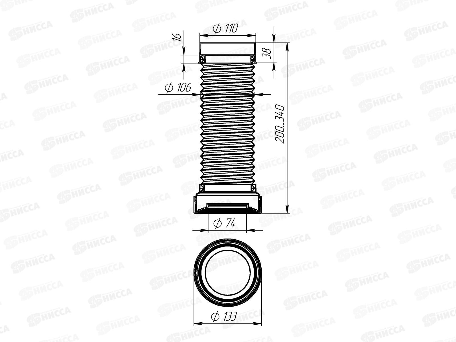 Удлинитель гибкий для унитаза армированный 200-340мм, с фановым выходом, T911 *27