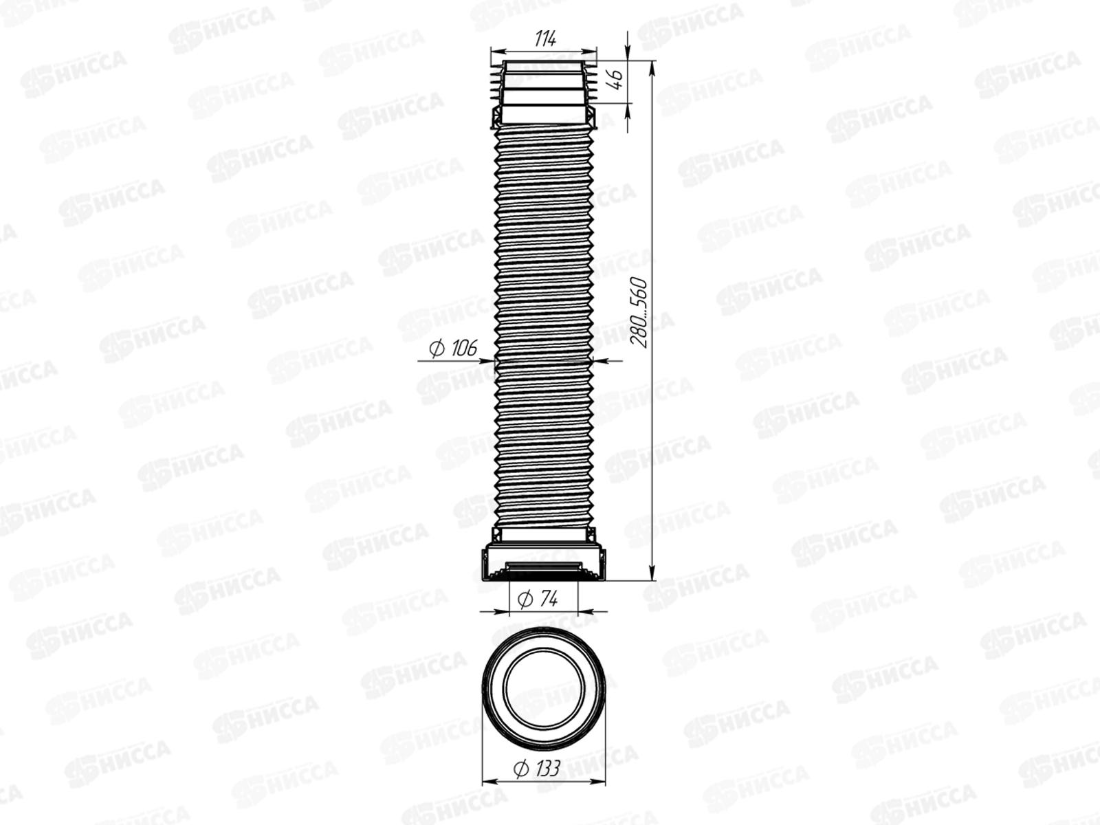 Удлинитель гибкий для унитаза армированный 280-560мм с гребенкой 114мм, T928 *18
