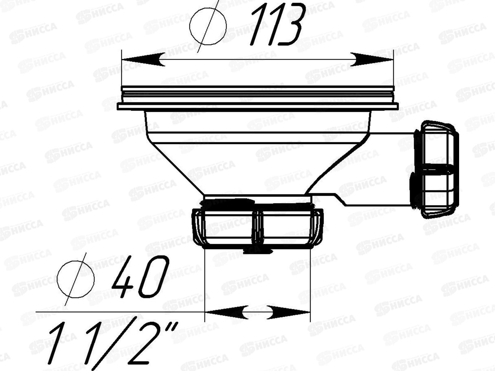 Выпуск 3 1/2" с пластиковой решеткой с отводом под перелив, PNV250 *40
