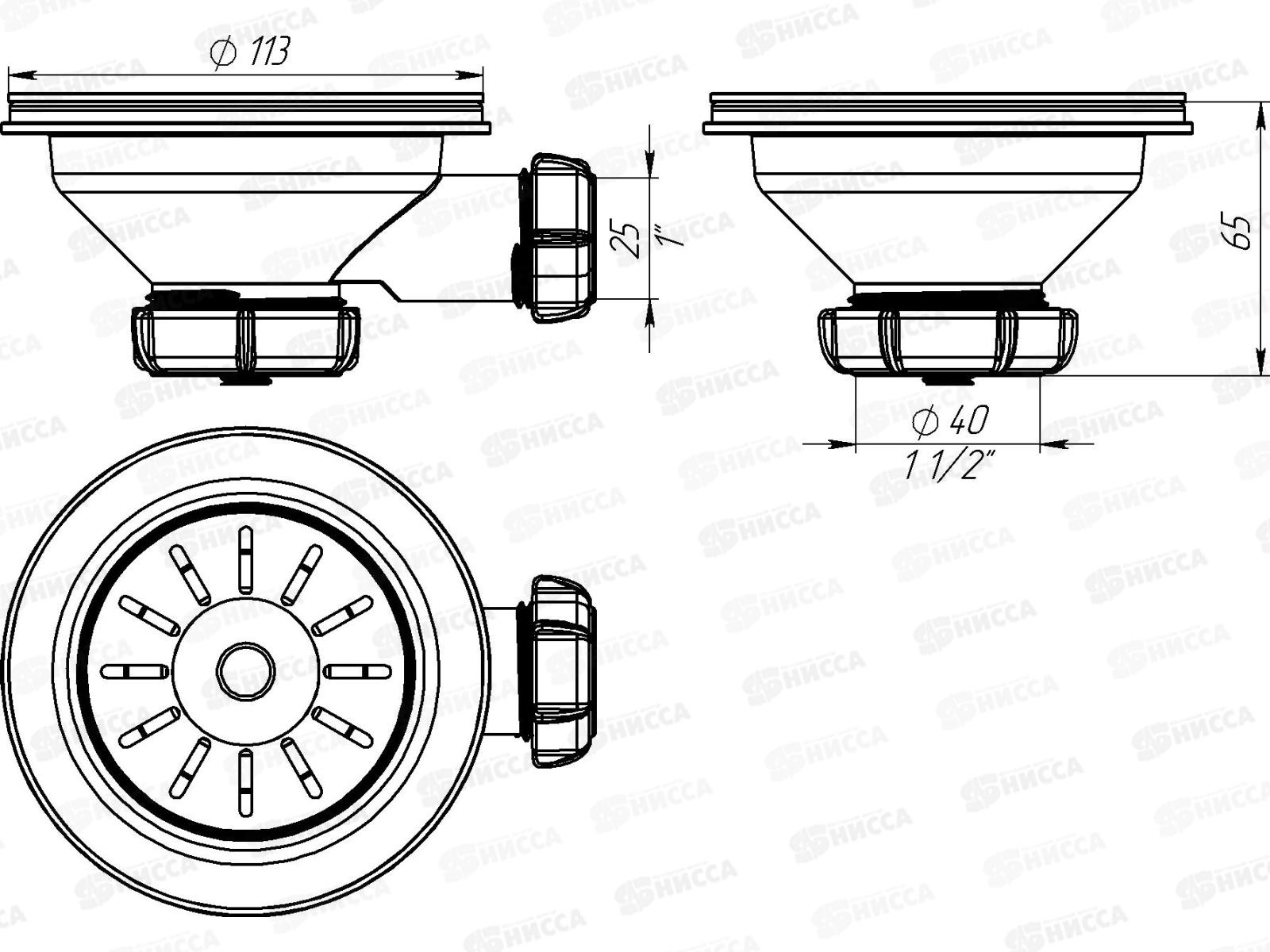 Выпуск 3 1/2" для кухонных моек с диаметром сливного отверстия 90 мм. Выпуск с разборной горловиной, с пластиковыми решетками 113 мм и ситечком 78 мм, пластиковым держателем ситечка и втулкой для крепления к мойке, с заглушенным отводом под перелив. Подходит для подключения к бутылочному или прямоточному (U-образному) сифонам бренда Aquant или других производителей. Все пластиковые детали выпуска производятся из первичного полипропилена с добавлением снежно-белого красителя, выдерживают перепад температур от +5 до +80 С. Прокладки изготовлены из высококачественных пластикатов (TPE, PVC, LDPE) и обеспечивают длительный срок службы и высокую ремонтопригодность. Все необходимые прокладки, гайки и винты в комплекте.