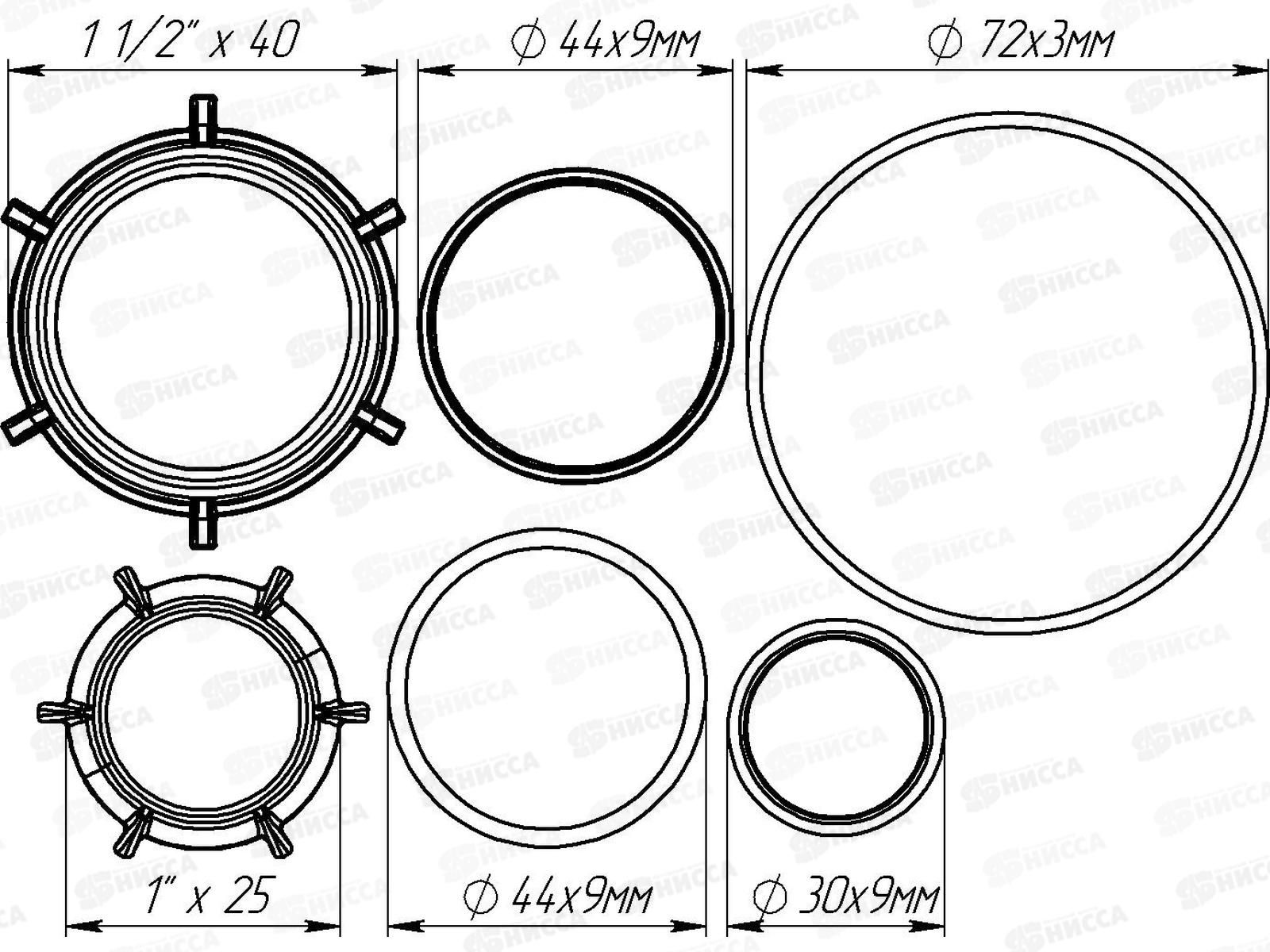 Ремонтный набор №2: прокладки конус 25 и 40мм, плоск. прокладка б/с гайки 1 1/2" и 1", NM103-50-MR *50