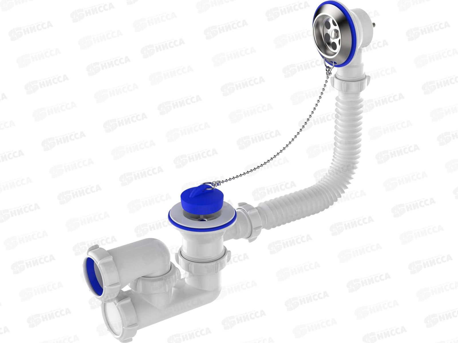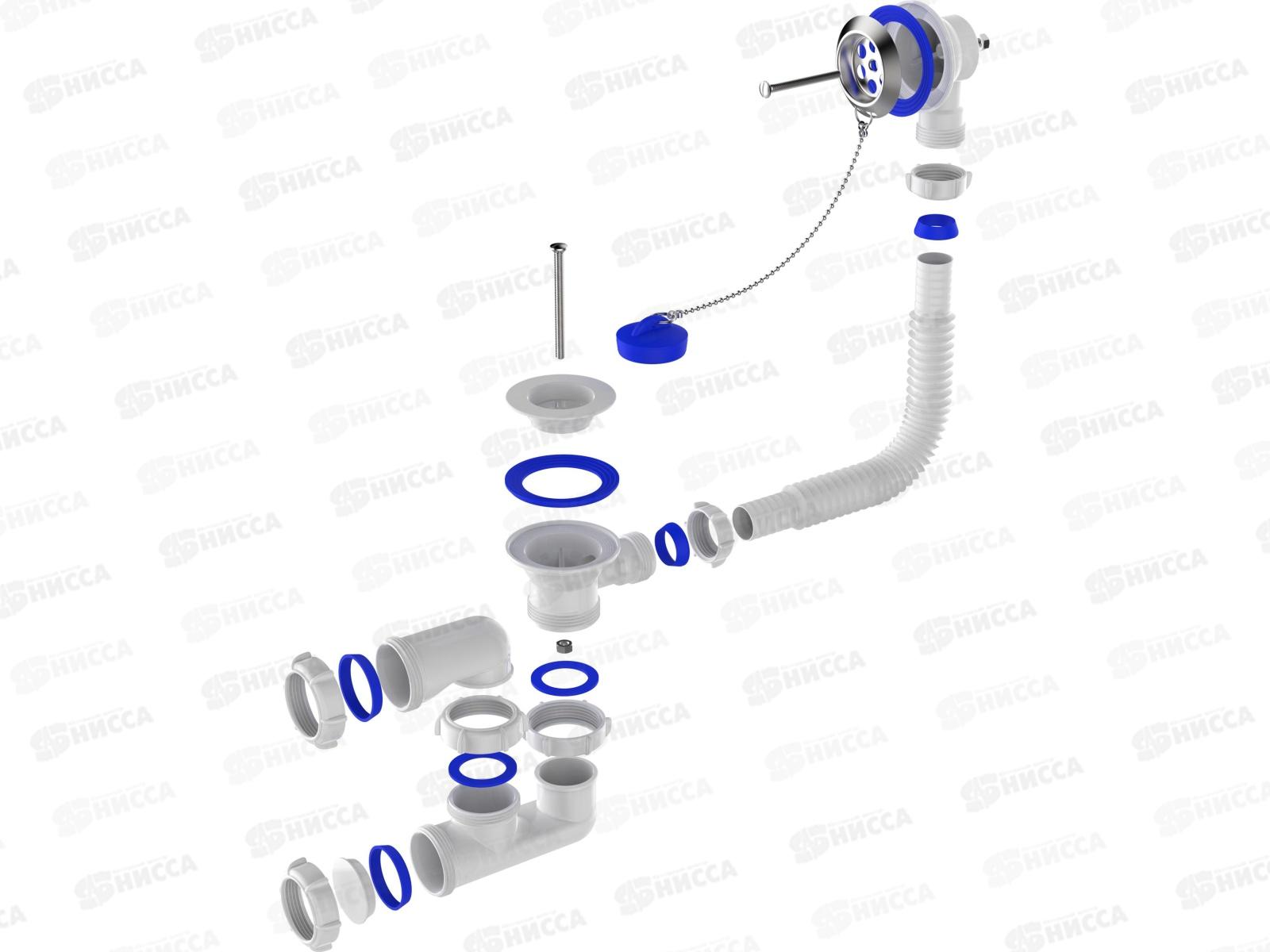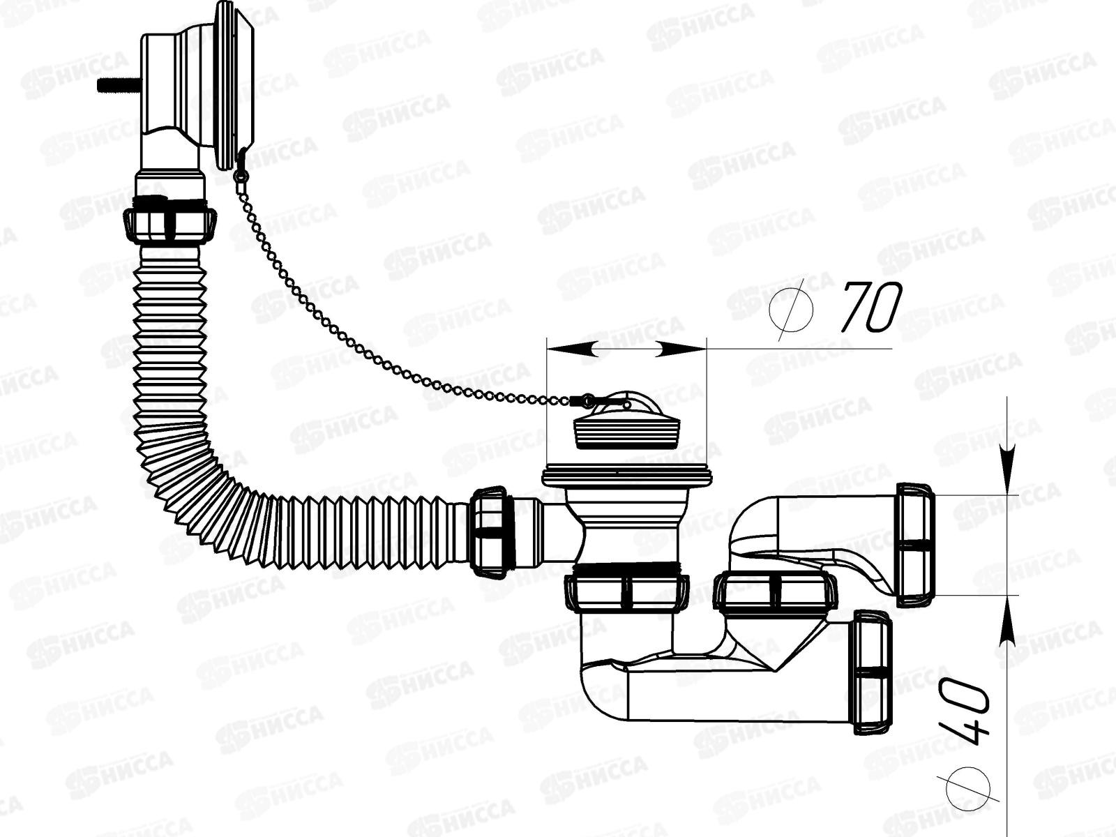 Сифон для ванн регулируемый. Выпуск с пластиковой решеткой O70мм спроектирован под стандартный диаметр сливного отверстия ванн O50мм. Подходит для всех типов ванн, в т.ч. чугунных. Решетка крепится на винт 60мм и шестигранную гайку М6. Перелив с трубкой длиной 50см и металлической решеткой. Колено сифона регулируемое с высотой гидрозатвора 50 мм, имеет ревизионное отверстие, заглушенное прокладкой и гайкой, для легкой прочистки сифона без его демонтажа, а Г-образная трубка отвода позволяет направить гофротрубу слива в нужную сторону. Труба отвода в канализацию или гофротруба приобритается отдельно. Скорость слива: 25 л/мин. В комплекте идет прокладка-бабочка из термоэластопласта (ТЭП), который не вступает в реакцию в акриловыми ваннами. Пробка для перекрытия воды из ТЭПа, на цепочке. Полная комплектация, все гайки, прокладки и схема установки в комплекте.