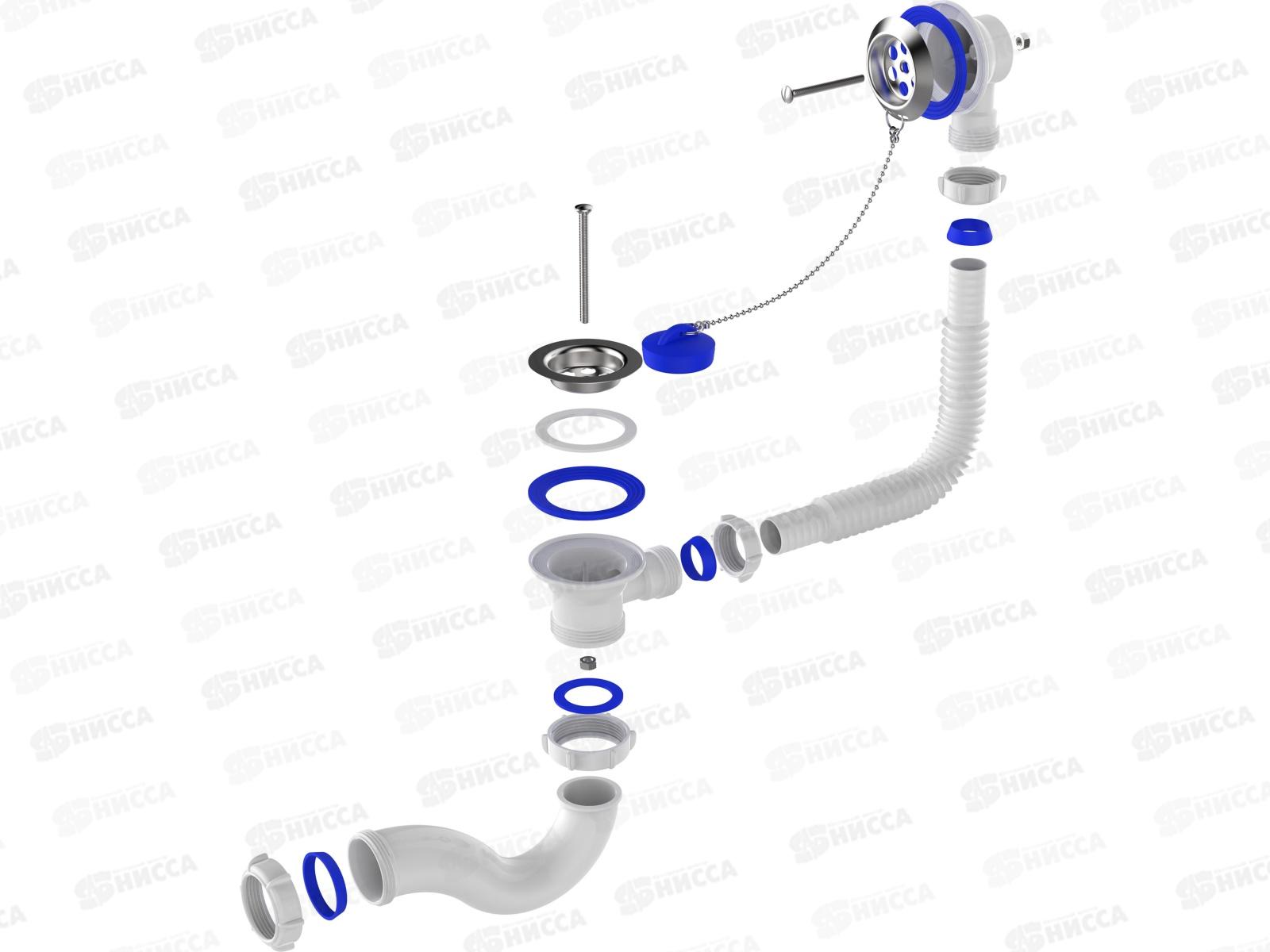 Сифон для ванн прямоточный. Выпуск с решеткой из нержавеющей стали 70мм спроектирован под стандартный диаметр сливного отверстия ванн 50мм. Подходит для всех типов ванн, в т.ч. чугунных. Решетка крепится на винт 60мм и шестигранную гайку М6. Перелив с трубкой длиной 50см и металлической решеткой. Колено сифона прямоточное, высота гидрозатвора 50 мм. Труба отвода в канализацию или гофротруба приобритается отдельно. Скорость слива: 25 л/мин. В комплекте идет прокладка-бабочка из термоэластопласта (ТЭП), который не вступает в реакцию в акриловыми ваннами. Пробка для перекрытия воды из ТЭПа, на цепочке. Полная комплектация, все гайки, прокладки и схема установки в комплекте.