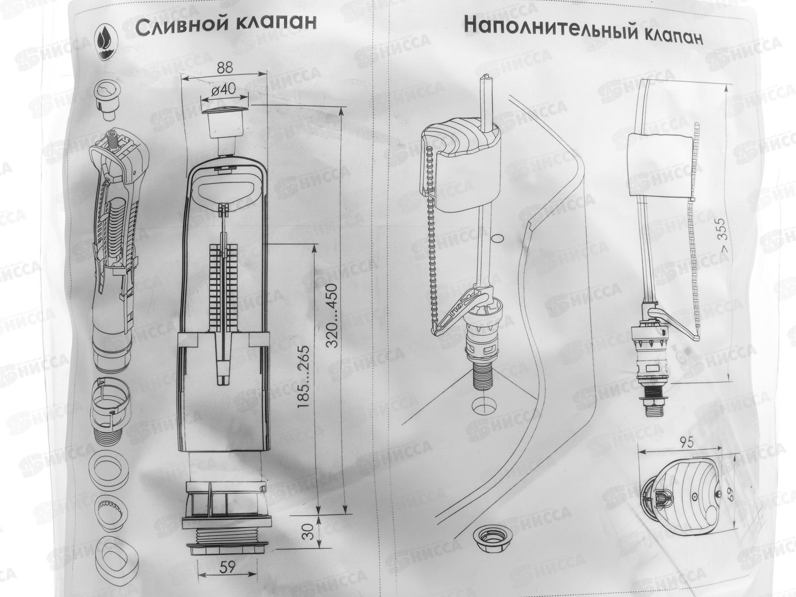 Состав набора: спускной клапан, наполнительный клапан