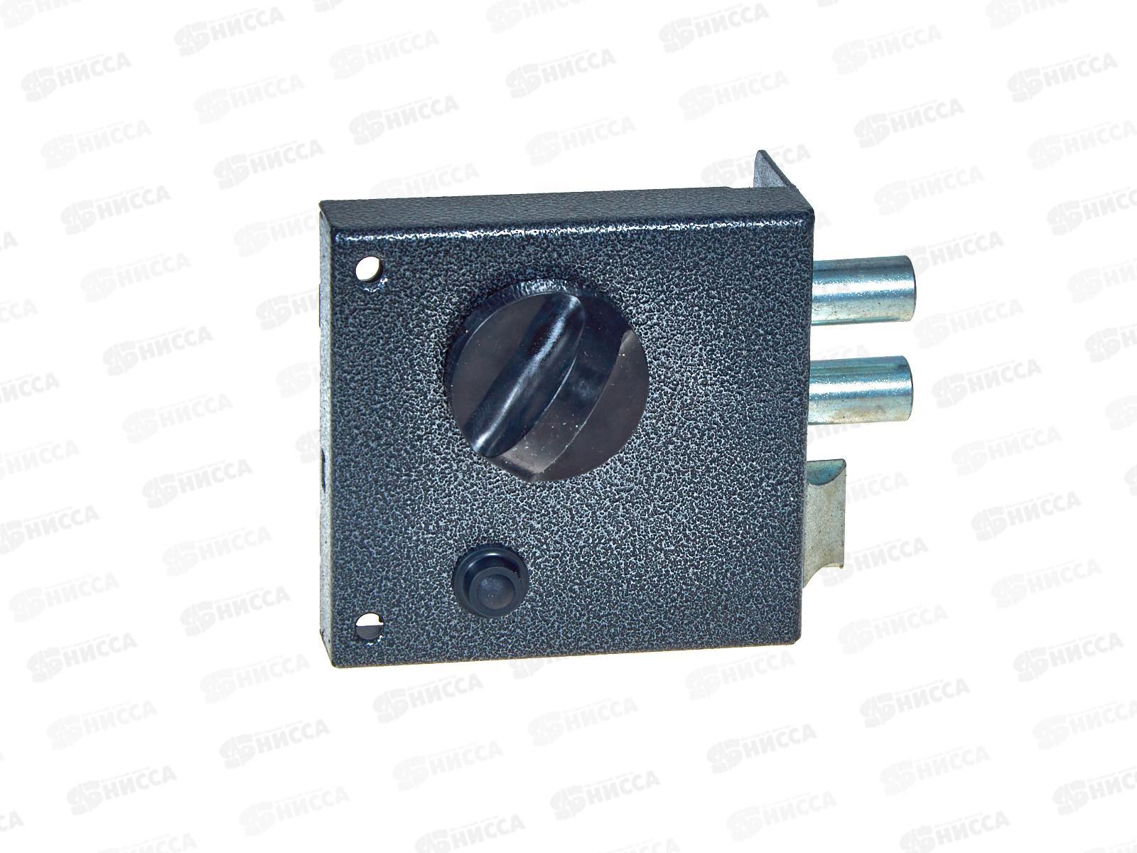 Замок накладной с защелкой, предназначен для установки в деревянные и стальные двери толщиной до 45 мм. Замки выпускаются в двух исполнениях: для дверей открываемых наружу и внутрь. Засов из двух стальных ригелей диаметром 14 мм. Замок снабжен дополнительной автоматической защелкой, которая отводится внутренней ручкой или ключом. Закрывание и открывание изнутри производится вертушкой, снаружи ключом. Замок имеет двойную блокировку: первая - блокировка от открывания ключом снаружи, путем доворота вертушки в крайнее положение при открытом ригеле, вторая - блокировка защелки с помощью фиксатора, как в открытом, так и в закрытом положении. Механизм секрета цилиндрический односторонний с английским ключом. Укомплектован 4-мя ключами, запорной коробкой и ключевиной из стали. Комплектация: ключи, запорная коробка и ключевина.