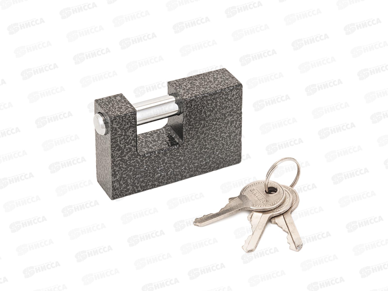 Замок навесной с прямой дужкой. Материал корпуса - чугун, полимерное покрытие. Стальная закаленная дужка. Латунный механизм секрета с английским ключом (3 шт.). Автоматическое закрывание. Упаковка - двойной блистер.