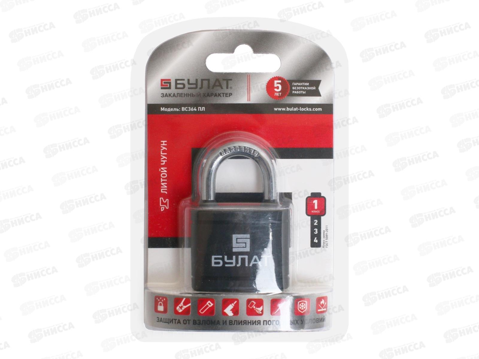 Замок навесной БУЛАТ чугунный в пластике ВС 364 ПЛ 5кл *6 14 510