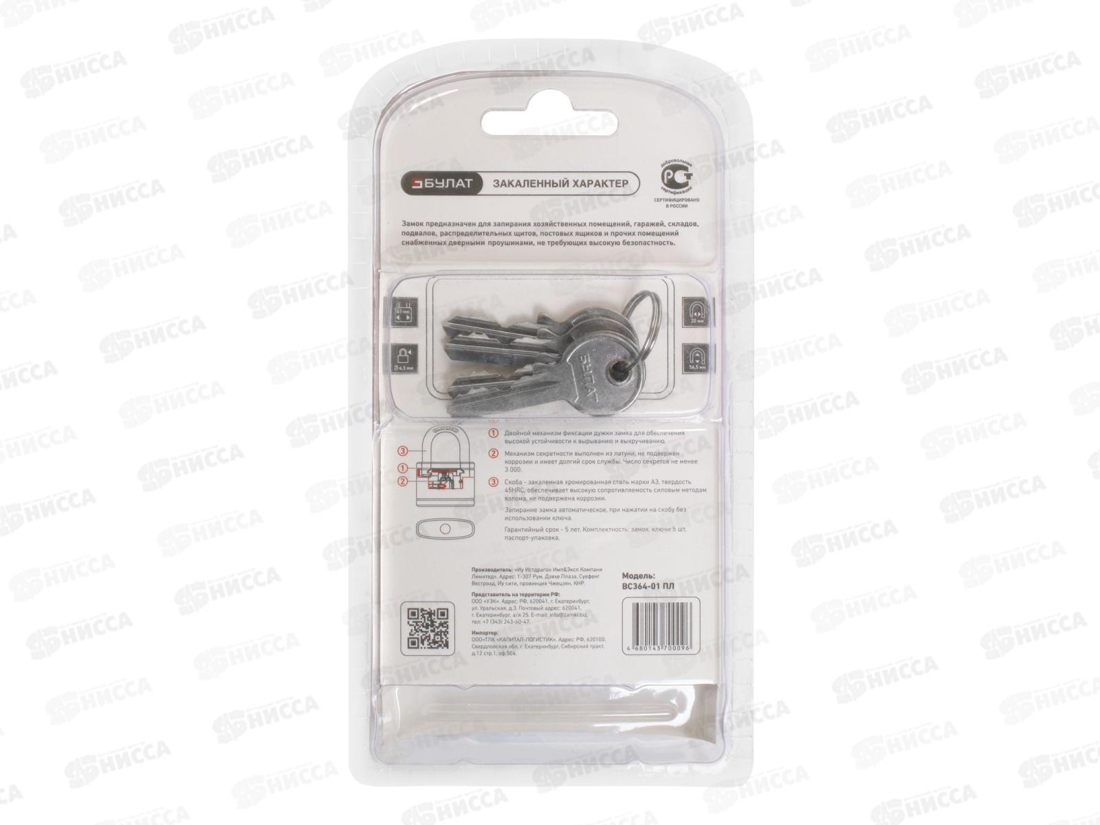 Замок навесной БУЛАТ чугунный в пластике ВС 364-01 ПЛ 5кл *6 14 514
