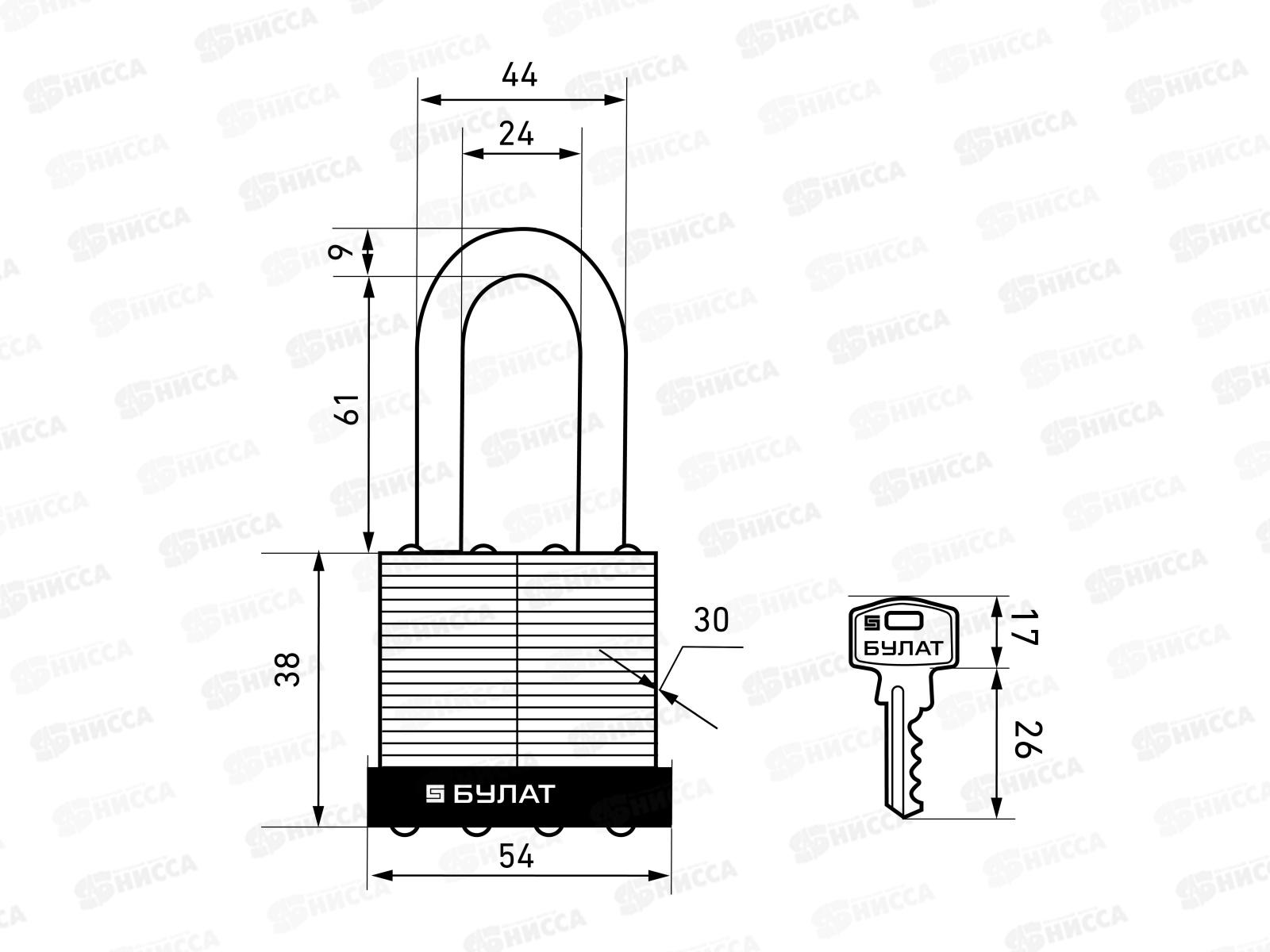 Замок навесной БУЛАТ ВС 0150-01 d-9мм стальной *36 13 449