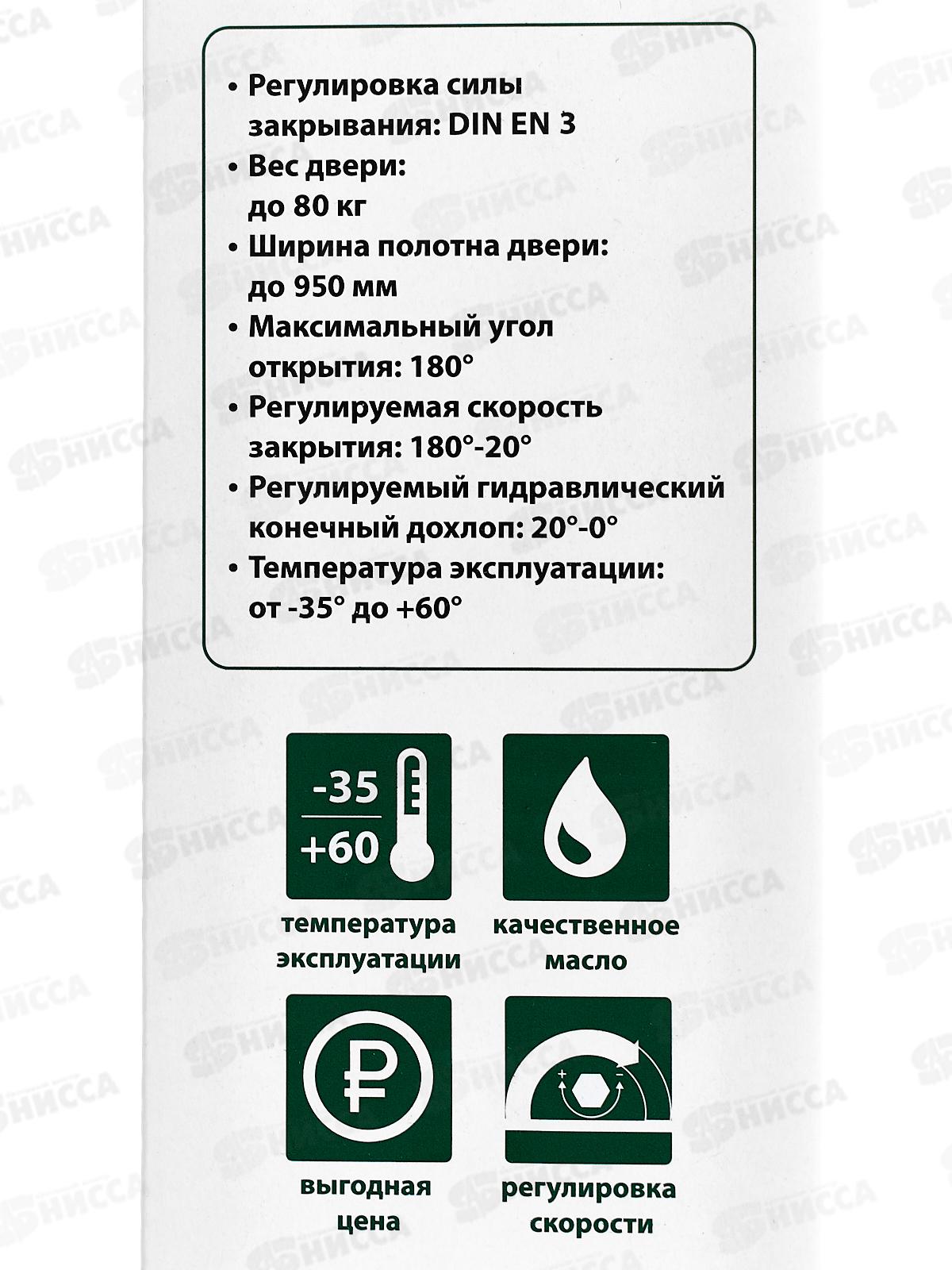 Рабочий ресурс до 500 тыс рабочих циклов. Класс EN3. В комплекте 2 вида крепежа – шурупы для установки.