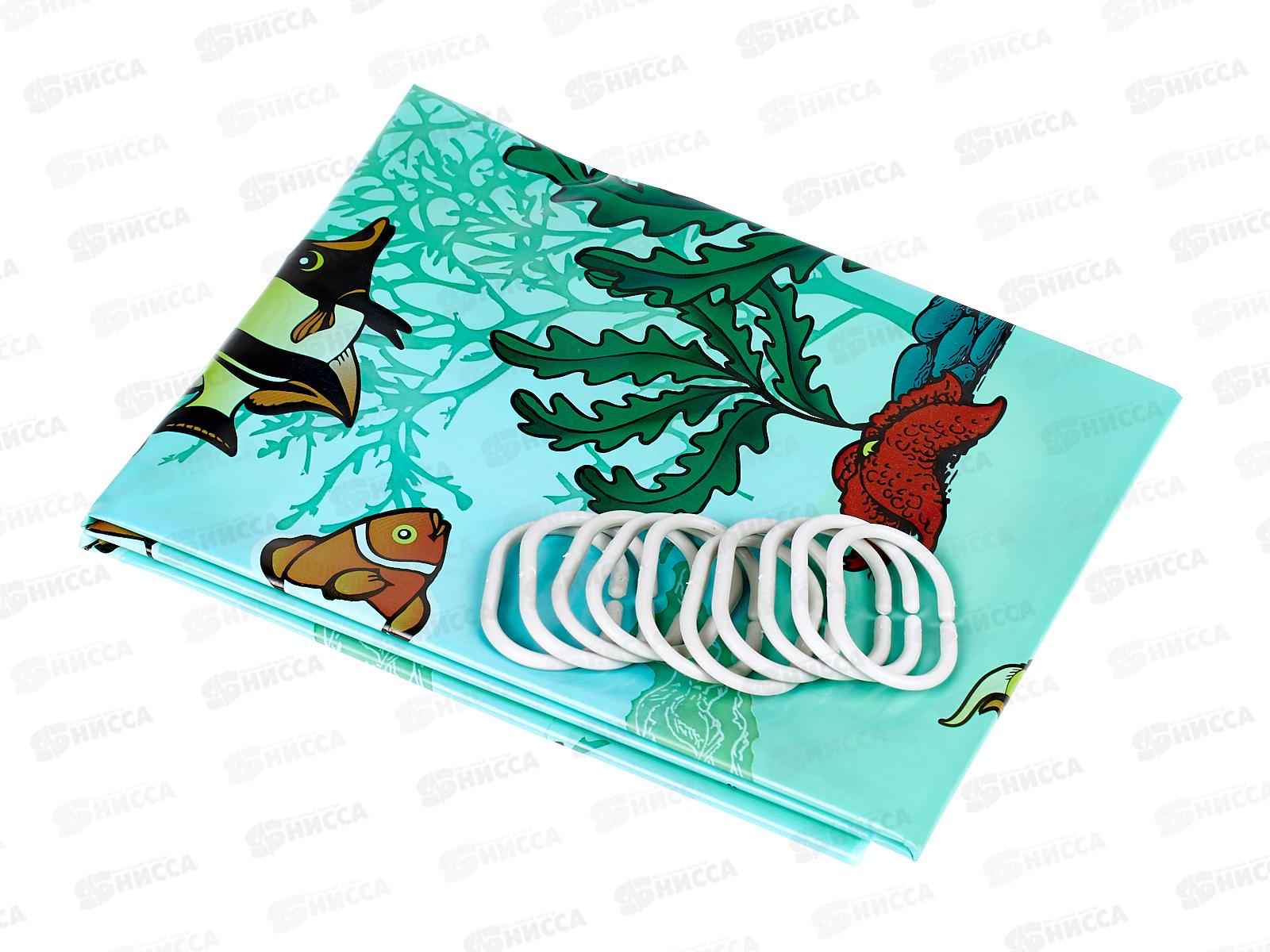 Штора в ванну полиэтиленовая 180*180 Водоросли *40