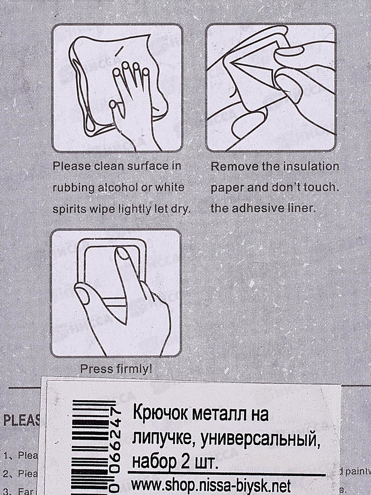 Крючок металлический на липучке, универсальный, набор 2 шт., AL-6624 *480