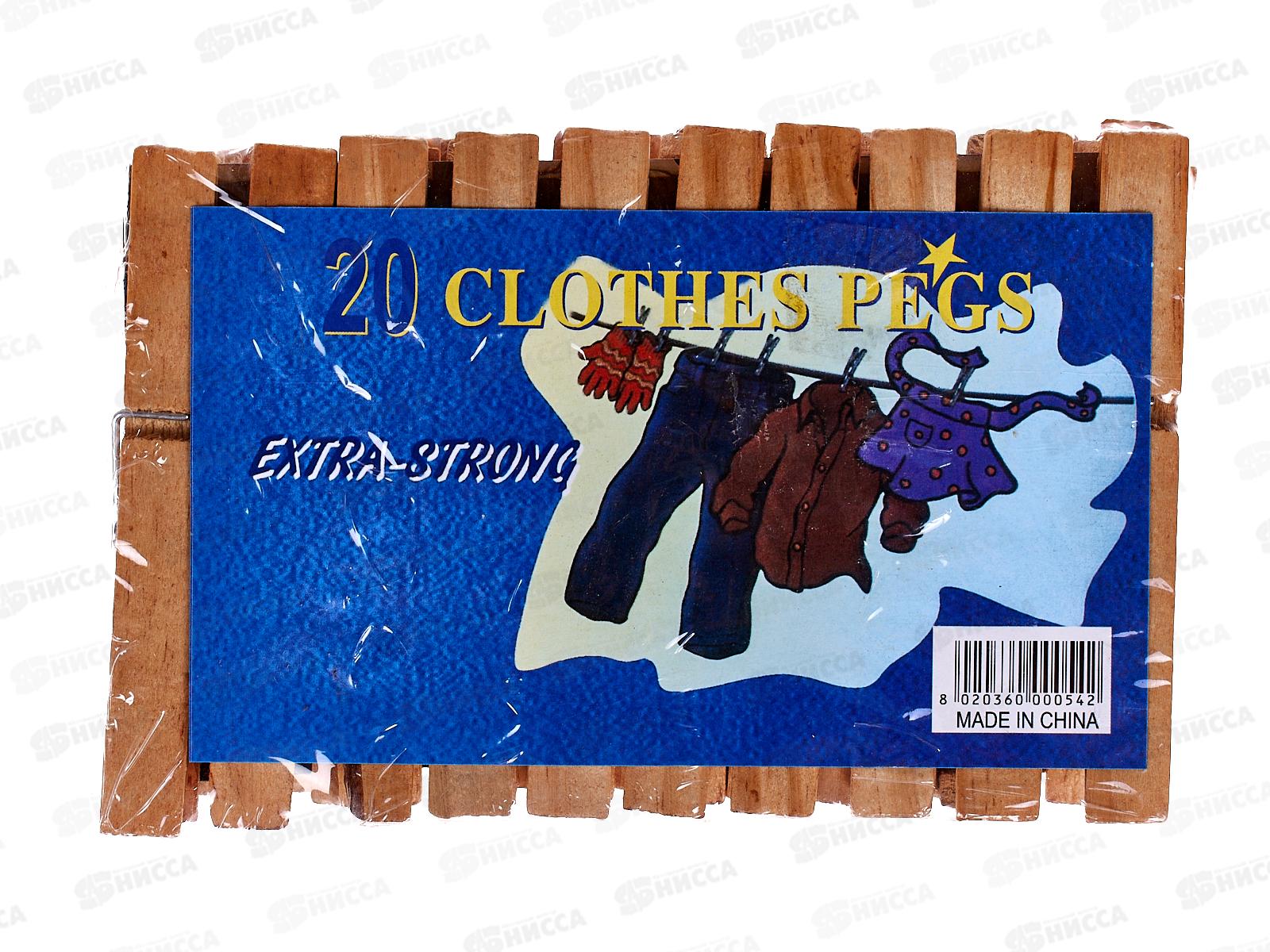 Прищепки из дерева набор 20шт 9.8х1.2 см., AL-100 *144