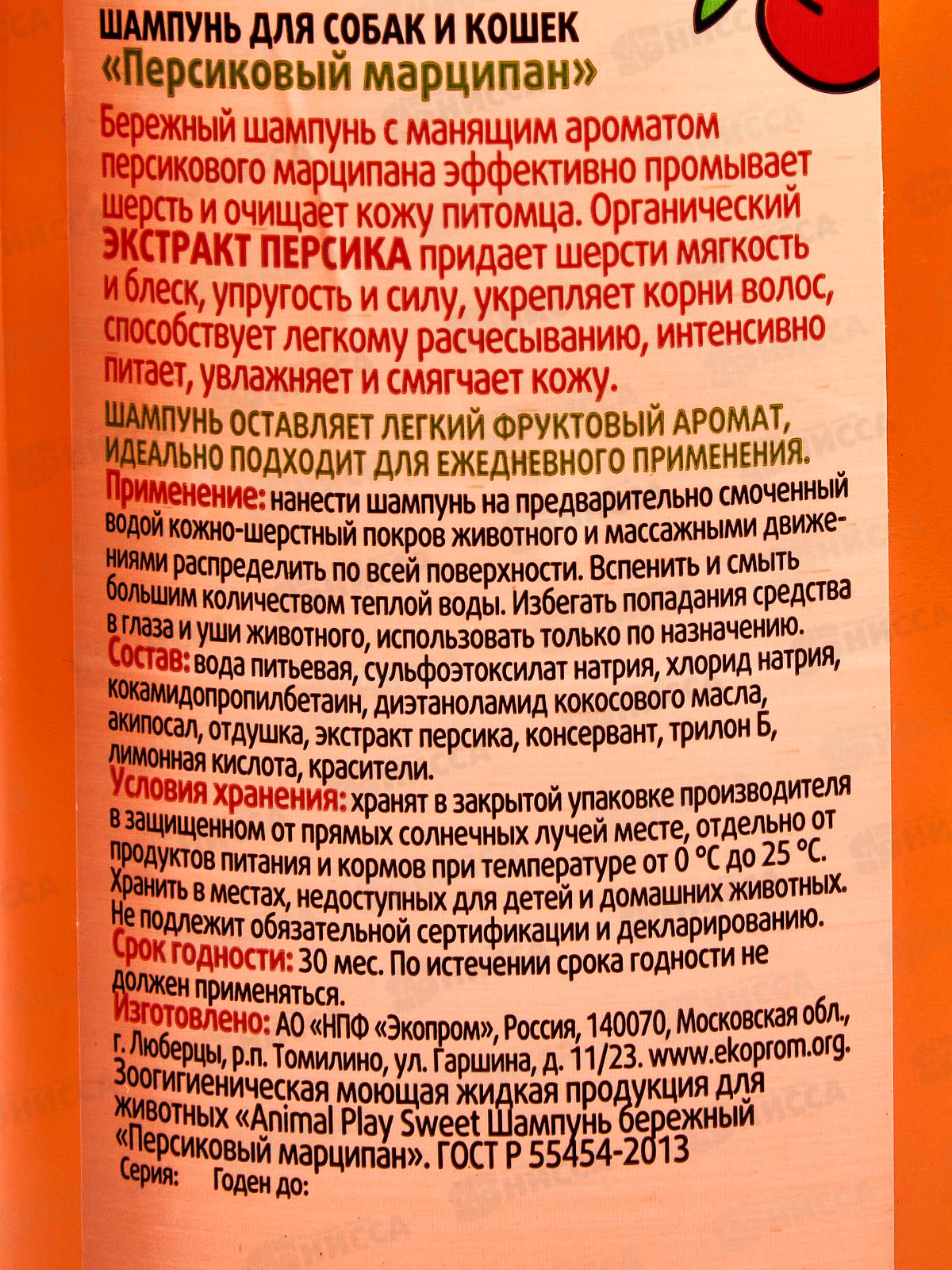 Шампунь Animal Play Sweet Бережный, для щенков и котят 300мл *12