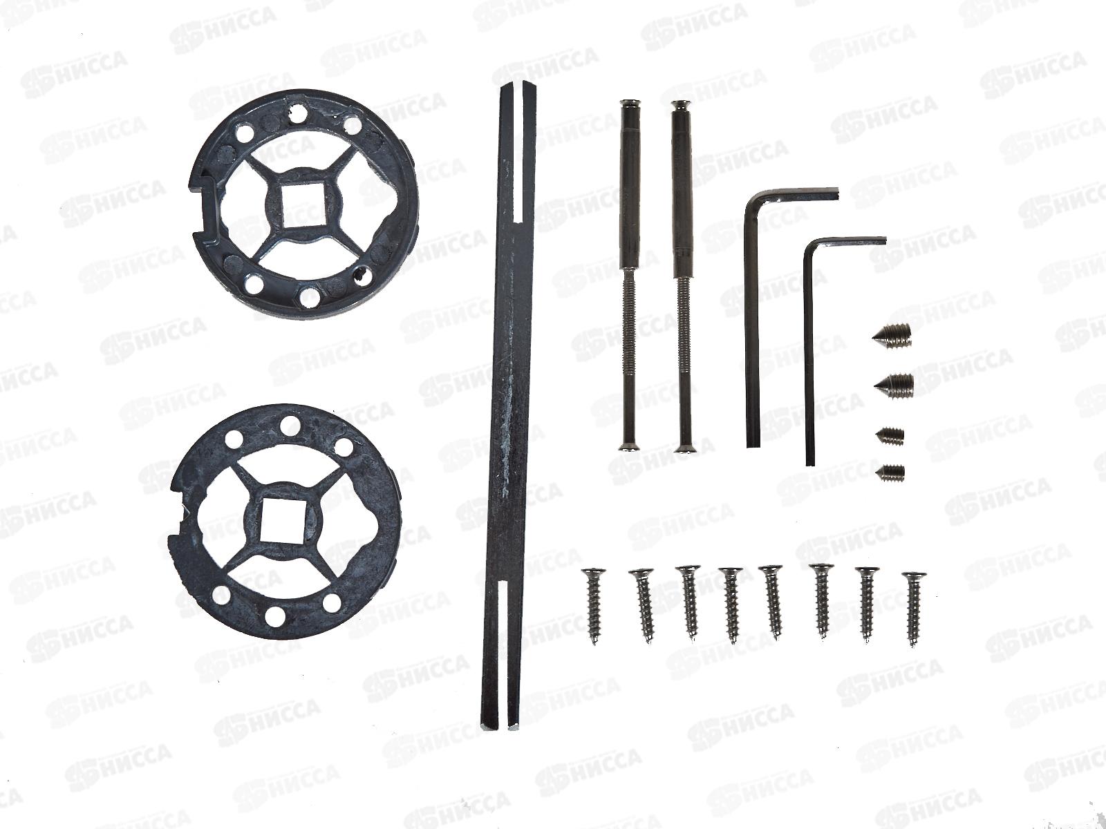 Ручка на квадратной накладке. Материал ручек — сталь. Многослойное гальваническое покрытие. Комплектуются винтовыми стяжками и шурупами.