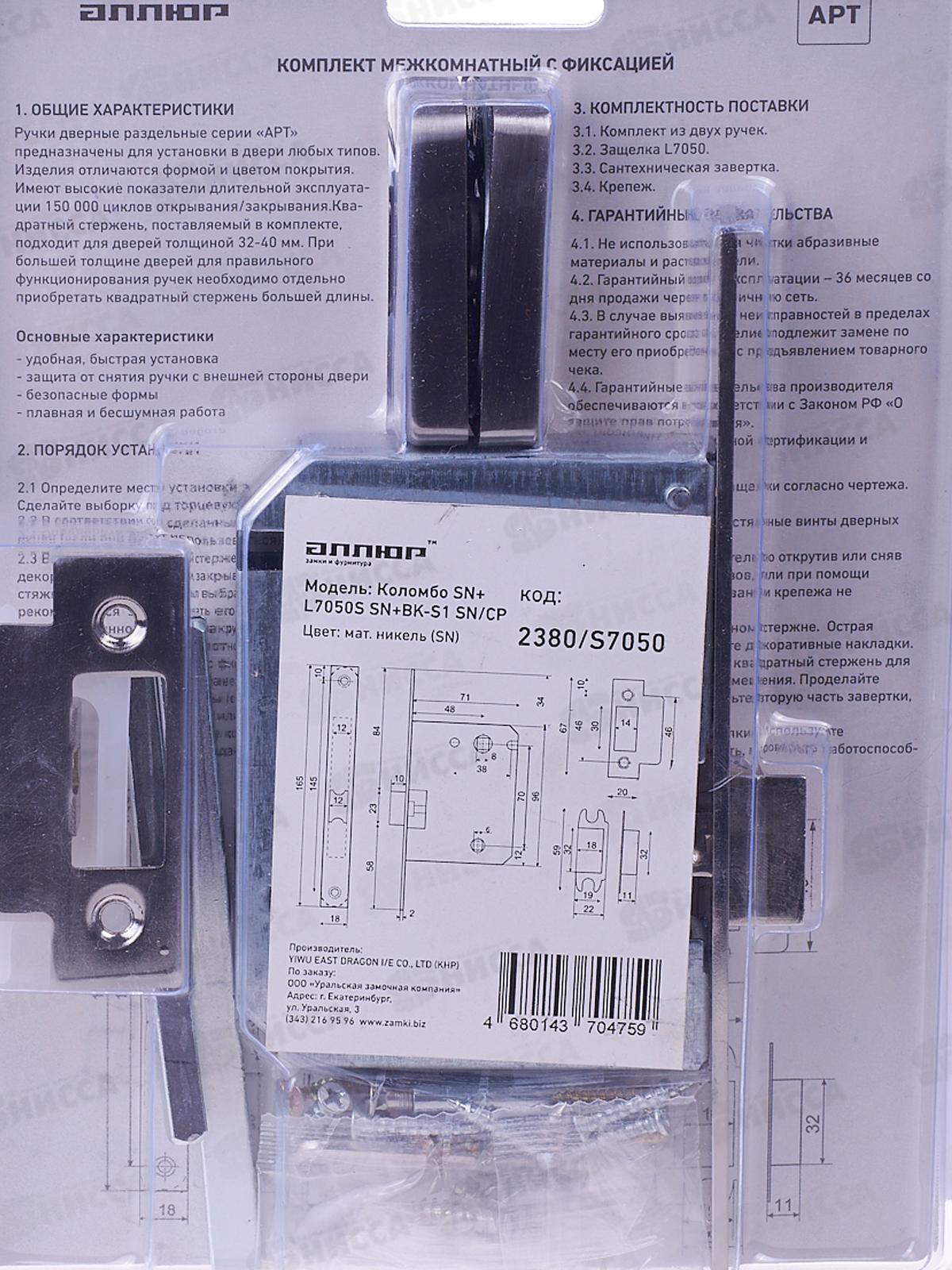 Комплектация: сантехническая завертка и защелка с фиксацией