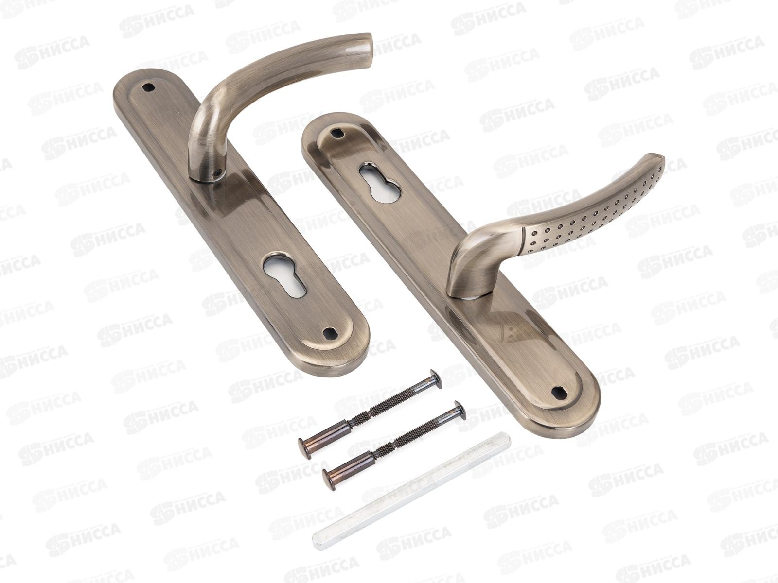Ручка на планке под замок и цилиндровый механизм. Материал - алюминиевый сплав, гальваническое покрытие. В комплект входят винтовые стяжки и квадратный штырь (8х8 мм) 105 мм.