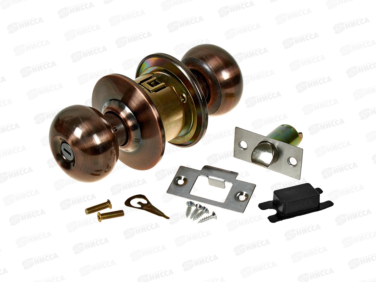 Ручка дверная врезная круглая с защелкой 5791АС медь (064453) Ж