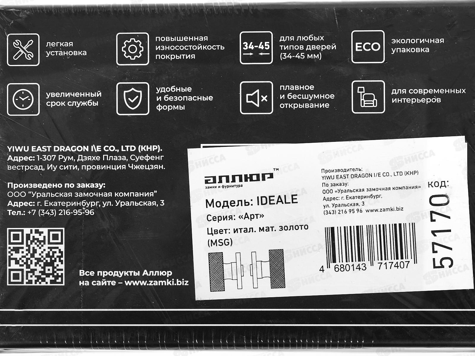 Ручки для дверей COLLECTION "IDEALE" MSG (57170) итал.мат.золото 16567