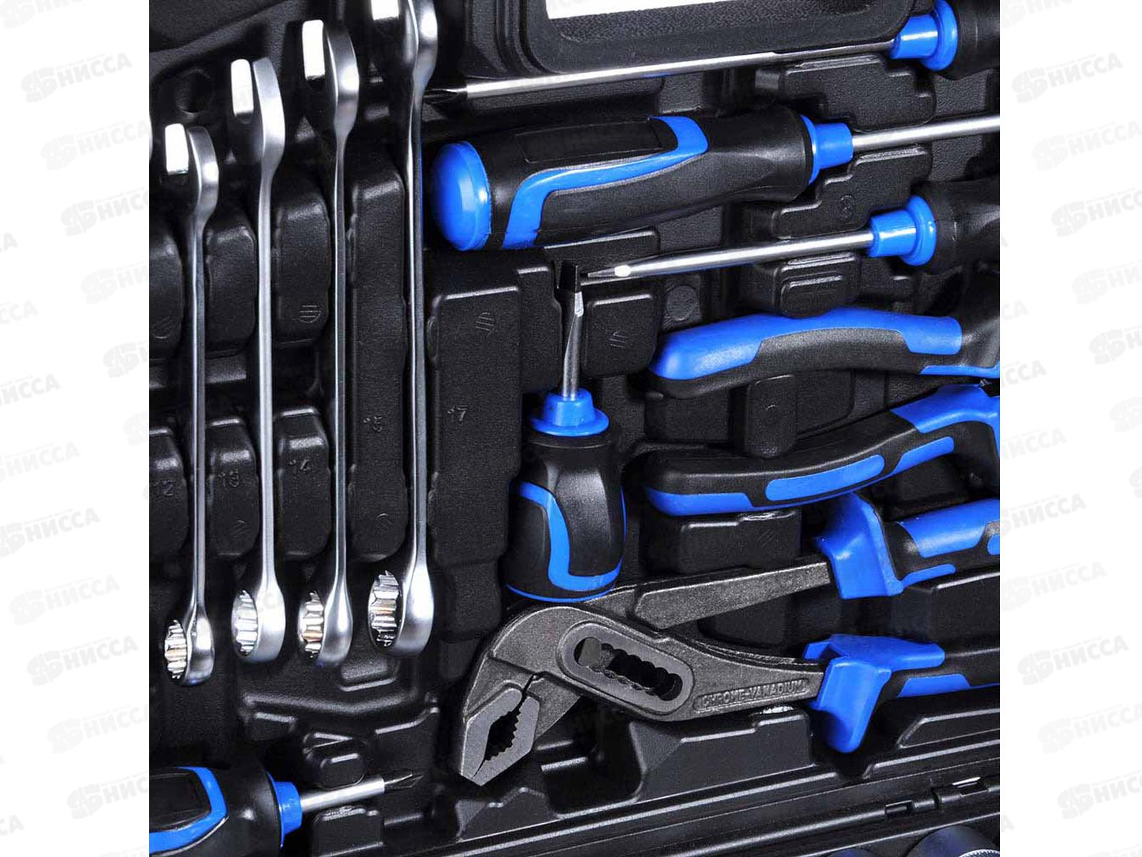 Наборы инстурментов ТМ РОКОТ- надежный и практичный комплект, предназначенный для бытовых ремонтных работ и обслуживания вашего автомобиля. Изделия набора изготовлены закаленной стали. Эргономичные ручки способствуют удобному хвату во время работы. Пластиковый кейс обеспечит компактное хранение и удобную транспортировку. В набор входит 66 предметов: головки 1/4": 6-13 мм (8 шт.); вороток 1/4": 6х110 мм; ручка-удлинитель с квадратом 1/4": 150 мм; головка свечная 1/2": 16-21 (2 шт.); головка 1/2": 10-13, 15, 17, 19, 22, 24, 27 мм (10 шт.); карданный шарнир 1/2"; трещотка 1/2"; ключи гаечные: 10, 12-15, 17 (6 шт.); молоток 300 г; клещи 10"; пассатижи 6"; отвертка крестовая 6х100 мм, 6х38 мм, 8х200 мм, шлицевая 6х100 мм, 6х38 мм (5 шт.); шестигранники 3-6 мм (4 шт.); биты 1/4" (22 шт.); головки с пружиной 1/4".
