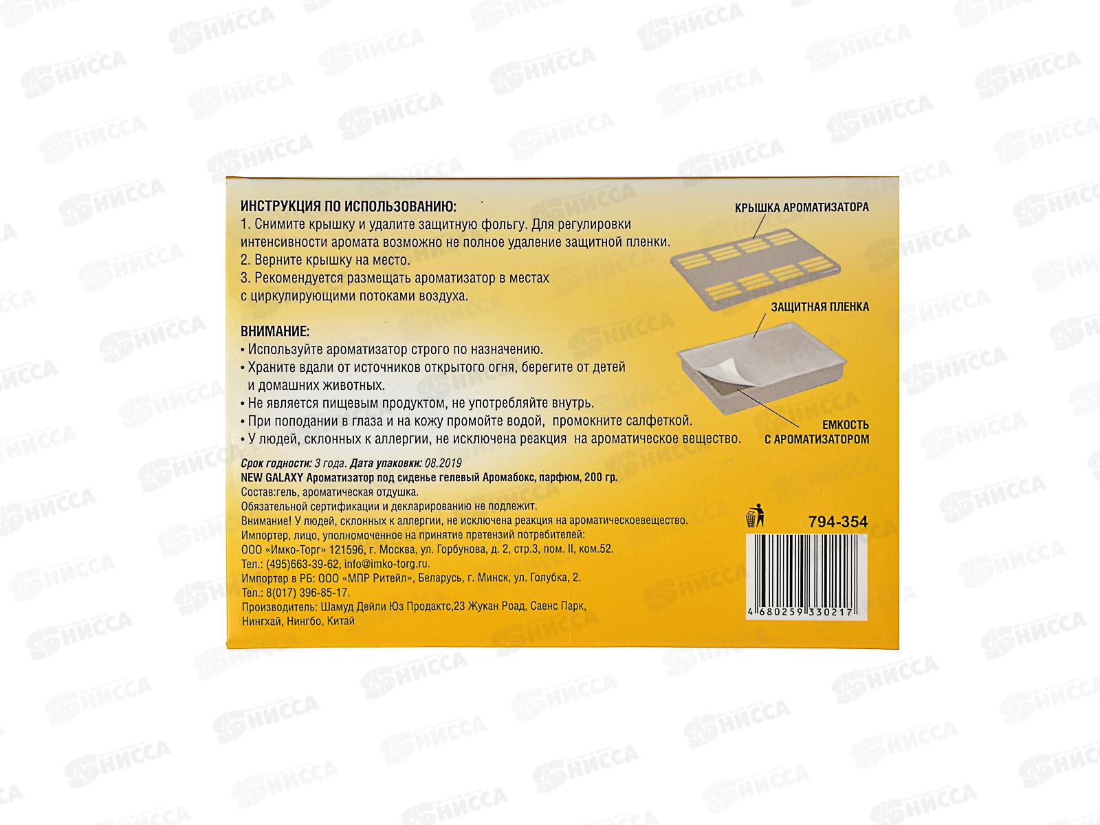 Наполните салон автомобиля нежным и сладковатым ароматом ванили, установив ароматизатор NEW GALAXY "Аромабокс" под сиденье. Гелевый ароматизатор медленно испаряется и распределяется по салону машины. Степень интенсивности аромата можно регулировать неполным удалением защитной пленки перед установкой под сиденье.