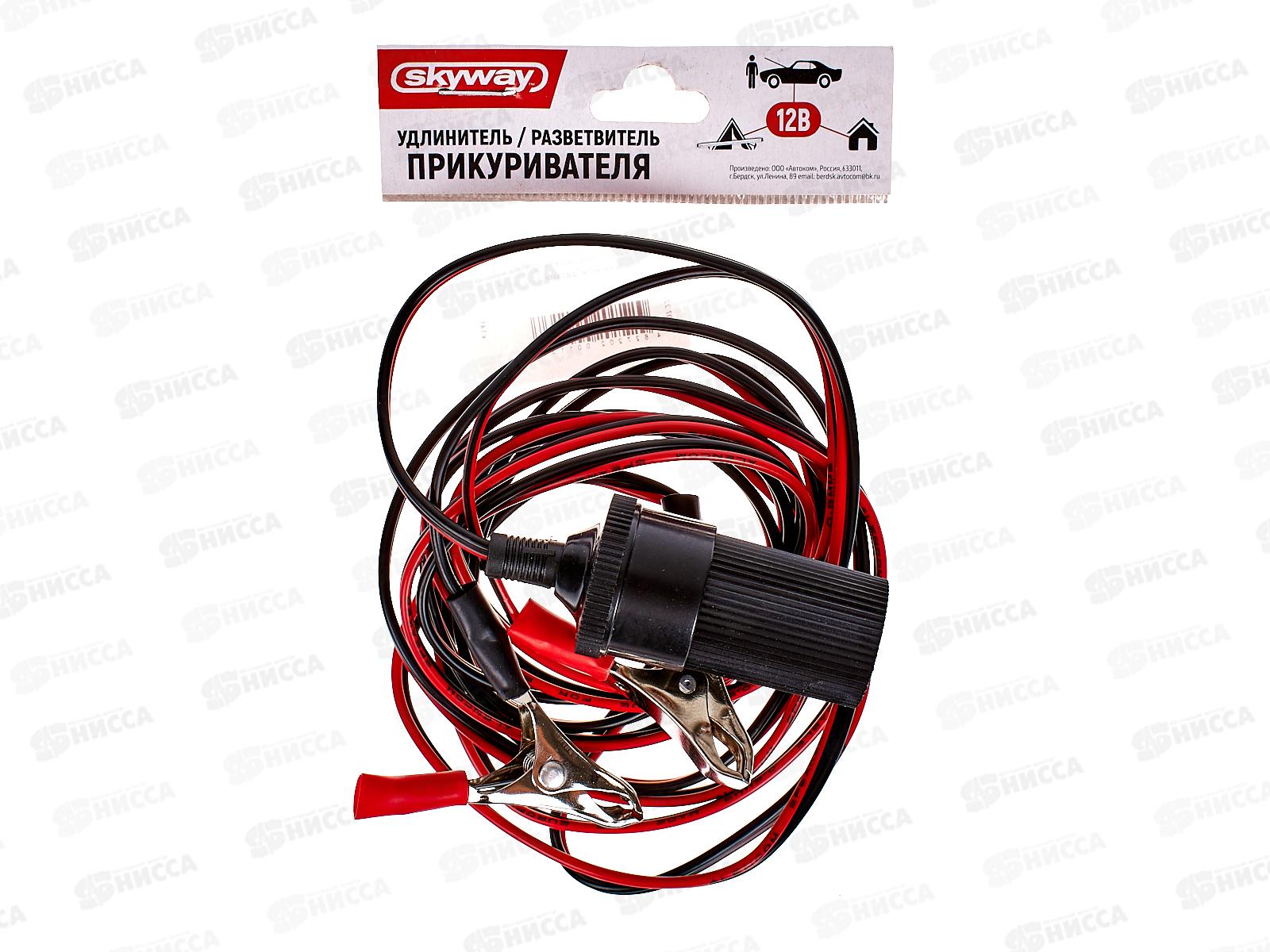 Удлинитель автоприкуривателя SKYWAY 3м с большими крокодилами, S00702004