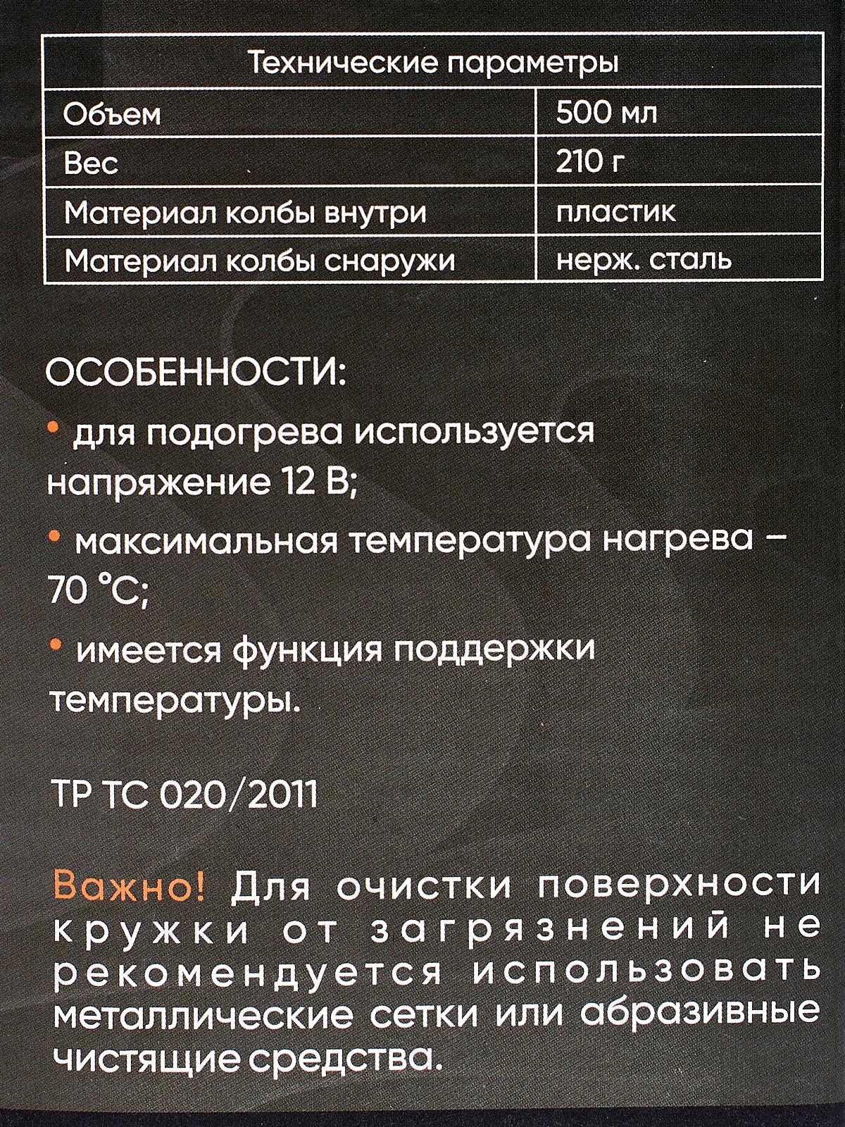 Автокружка с подогревом представляет собой уникальную конструкцию в виде кружки из нержавеющей стали с удобной ручкой, герметичной крышкой и узким дном, для установки в подстаканник. Крышка оборудована специальным питьевым отверстием с задвижкой, которое позволяет сделать глоток горячего чая или кофе прямо за рулем, не боясь выплескивания напитка.